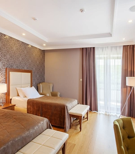 - Железноводск На карте6.52 отзываЗагородный спа-санаторий в окружении леса. Всего 17 номеров. Атмосфера уединения и гармонии, премиальный сервис. Каждого гостя сопровождает личный ассистент-тьютор • Бювет с минеральной водой Железноводска — «Славяновская» • Номера в неоклассическом стиле с отделкой из природных материалов. Окна номеров выходят на лес. В отдельных категориях номеров есть выход на собственную террасу с ротанговой мебелью • В номерах: кондиционер, чайная станция, кофемашина, мини-холодильник. В ванной: теплый пол, фен, халаты, тапочки, полотенце для мейкапа, эксклюзивная косметика Marina Koshel • Комфортный сон: ортопедические матрасы Strong Smart Joy, подушки разной степени жесткости, качественный текстиль, плотные шторы • Во все тарифы включен завтрак a la carte в ресторане Montis. Также можно выбрать тарифы с полным и полупансионом по сет-меню. В ресторане богатая карта вин со всего мира и индивидуальное обслуживание сомелье. В путевку включена консультация диетолога и нутрициолога с подбором меню • Круглосуточная спа-зона с бассейном, джакузи, хаммамом, массажным креслом Yamaguchi. Рядом открытая зона для загара с лежаками. Бесплатное посещение включено во все виды путевок • Клиника «Академия Медицинской Косметологии». Создатель и руководитель клиники — кандидат медицинский наук М.В. Кошель. В клинике работают ведущие специалисты региона: профессоры, доценты и ассистенты кафедры дерматовенерологии и косметологии • Во все путевки включена бесплатная консультация косметолога и терапевта (по предварительной записи) • Аппаратная косметология на ведущих аппаратах: оксигенация GeneO+, Icoone Laser, Endospheres Therapy, Hydrafacial, SMAS-лифтинг ULTRAFORMER III, безинъекционная мезотерапия Dermadrop TDA, Leonardo Huper Pulse, Medical laser, LED-терапия, детокс-модуль IYASHI DOME • Институт ручных техник — мануальная и кинезиотерапия, медицинский и спортивный массаж, коррекция осанки, реабилитация после травм. Ведет прием врач-реабилитолог, остеопат В.В. Щербов, у которого проходят реабилитацию профессиональные спортсмены (Константин Цзю, Родион Пастух, Дмитрий Пирог) • Бальнеолечение: подводный душ-массаж, ванны: минеральная, солевая, винная, искусственные ванны • Инъекционная терапия: капельницы Лаеннек, глутатион и витамин C, витамин D3, плазмо- и плацентарная терапия, внутривенное лазерное облучение крови (ВЛОК), карбокситерапия • Дерматоскопия и удаление новообразований, сосудов, пигментных пятен, лечение акне • EMS-терапия — электростимуляция для тренировки мышц тазового дна, шейно-воротниковой зоны, лица • Редкое направление — лечение гипергидроза (повышенного потоотделения) • Здоровое движение: тренажерный зал, аквафитнес, ЛФК, йога, пилатес, велотуры, скандинавская ходьба • Рядом с санаторием расположен открытый парк горячих источников «Итальянские термы»: 4 бассейна с минеральной водой, релакс-бассейн 110 кв.м. с гидромассажем. Температура воды в бассейнах — 36 °C круглый год • Бесплатный трансфер до городов-курортов каждый день. Для гостей с автомобилем — охраняемая парковка на территорииВыбратьот18 000 ₽сут/чел