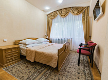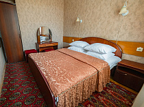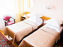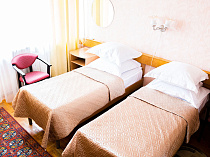 телевизор, фен, набор чайной посуды, душ, шкаф, прикроватные тумбочки, утюг с гладильной доской, электрочайник, стол, набор полотенец, две односпальные кровати, мини-холодильник