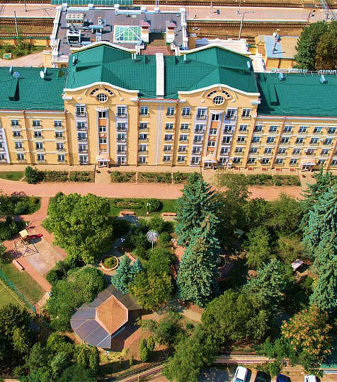 - Ессентуки 280 м до парка7.227 отзывовРасположен напротив входа в Курортный парк, у грязелечебницы им. Семашко. В шаговой доступности: бюветы Ессентуки № 4 и Ессентуки № 17, Николаевские ванны, концертный зал им. Шаляпина • Санаторий администрации президента РФ — высокие стандарты лечения и сервиса • Корпус № 2 — исторический памятник 1902 года в средневековом стиле фахверк. Бывшая Ново-Казенная гостиница, где отдыхали Шаляпин, Рахманинов, Станиславский, Горький, Прокофьев, встречался с читателями Куприн, играли в бильярд герои Ильфа и Петрова. Весной здесь цветет самая красивая в городе сакура • Корпус № 3 — памятник советской архитектуры в стиле модерн (1964 г.). Номера с видом на историческую часть города и Эльбрус. Во всех номерах есть балкон с ротанговой мебелью • Территория санатория утопает в зелени многолетних сосен, каштанов, елей и редких растений — катальпа, сумаха, черноплодной рябины • Трёхразовое питание «шведский стол». Отдельное заказное меню для гостей категории «Люкс». Есть специальные диеты — антихолестериновая и низкокалорийная. На территории: банкетный зал, летний бар • Крытый бассейн 24×12 м. Проводятся занятия аквааэробикой. Выделено время для свободного плавания, включая детские часы • Насыщенная программа развлечений: концерты живой музыки, караоке, дискотеки, творческие мастер-классы. Есть библиотека с читальным залом и танцевальный зал • Здоровое движение: ЛФК, плавание, аквааэробика, гимнастика с элементами йоги и стретчинга, детензор-терапия, тренажерный и спортзалы, теннисный корт, бильярд, прокат палок для скандинавской ходьбы • Два специализированных отделения — лечение болезней ЖКТ и обмена веществ. Врачи 16 профилей, врачи гастроэнтеролог и эндокринолог — кандидаты медицинских наук. Собственная лаборатория: более 80 ключевых исследований, включая ревмопробы, онкомаркеры, гастропанели и др. • Широкая диагностическая база: УЗИ, рентген (включая денситометрию, обзорную урографию). ЭКГ, Эхо-КГ, суточное мониторирование, велоэргометрия, РЭГ, РВГ. ФЭГДС, ректоромано-, колоно- и сигмоскопия. Эластометрия печени. Спирография, пульсоксиметрия. Альтернативные методы диагностики: электропунктурная диагностика Фолля и вегетативно-резонансное тестирование (ВРТ) • Два вида минеральных ванн — углекисло-минеральные и углекисло-сероводородные. Подводный душ-массаж ручной и в гидромассажной ванне «Каракалла» • Вытяжение позвоночника: подводное вытяжение «Атланта» и сухое вытяжение позвоночника на аппарате «Ормед-профессионал» • Более 25 видов современной физиотерапии. Грязелечение (аппликации, общая грязь и электрогрязь). Ингаляции и соляная комната. Барокамера, респираторная терапия гелием и оксидом азота, вентиляция легких (CIPAP-терапия). Массаж и мануальная терапия. Озонотерапия. Лечебные капельницы • Редкая процедуры — радиочастотная терапия (RF-лифтинг) в гинекологии на аппарате EVA • Здоровая спина и суставы: рентгенография позвоночника с функциональными пробами, денситометрия, электронейростимуляция «ДЭНАС-Вертебра», термовибромассаж, лазеро- и электропунктура, детензор-терапия и ЛФК • Офтальмологический кабинет: рефрактометрия, офтальмотонометрия, гониоскопия, экзофтальмометрия, диафаноскопия, подбор очков • Стоматологический кабинет: терапевтическая стоматология, ультразвуковая чис