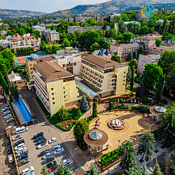 - Кисловодск 1000 м до паркаУникально! Аквапарк 1000 кв.м. с горками, каскадами, бассейнами и зоной для загара • Центр Кисловодска: 7–10 минут до Курортного парка и бульвара, Филармонии, Нарзанной галереи • Бювет с минеральной водой двух курортов: «Ессентуки-4» и «Славяновская» (Железноводск). 8–12 минут до бюветов с минеральной водой Кисловодска • Лечебные ванны с природной минеральной водой Нарзан • Бассейн 22×11 м гидромассажем, каскадами, джакузи и низкохлорной очисткой воды. Проводятся занятия аквааэробикой. Есть детская зона • Термальные зоны: финская сауна, русская баня, инфракрасная сауна, кедровая бочка (зависит от корпуса) • Территория с красивым ландшафтным дизайном. Два корпуса санатория — памятники истории и архитектуры: Дача Миклашевского и Дача Мухтарова • Комфортные номера и апартаменты. Есть номера с балконом. Во всех номерах: кондиционер, холодильник, чайная станция, телевизор, хороший Wi-Fi, фен, косметические наборы, питьевая вода в номере или на этаже • Очень хорошая вибро- и шумоизоляция во всех корпусах • Трехразовое питание «шведский стол» с большим выбором блюд и напитков • Хорошая программа развлечений: вечерняя программа с ведущими, кинопоказы, живая музыка, концерты, дискотеки, караоке • Здоровое движение: 4 вида ЛФК, тренажерный зал с современными комплексами и беговой дорожкой, крытый и открытый теннисные корты (можно взять уроки с тренером), бильярд, прокат велосипедов и самокатов • Отдых с детьми с 0 лет, лечение — с 4-х лет. Дети до 4-х лет размещаются бесплатно. Детская комната с воспитателем, открытая игровая площадка, детская зона в бассейне, аквапарк, видеозал и компьютерный клуб • Медицинские корпус работает с понедельника по субботу. В воскресенье работают кабинеты лечебных ванн • 12 программ лечения. 5 чекап-программ комплексной диагностики: Общий чекап, Пищеварение, Сердце, Щитовидная железа, Метаболический синдром • Врачи 9 профилей. Собственная лаборатория. Диагностика УЗИ, ЭКГ с нагрузкой, холтер, суточное мониторирование артериального давления, реоэнцефалография, реовазография, эндоскопические исследования • Уникально! Диагностика на аппарате «Симона 111» отражает 155 физиологических показателей, их тренды и отклонения от индивидуальной нормы • Бальнеоотделение: нарзанные ванны, 13 видов искусственных ванн, сухие углекислые ванны, 5 видов лечебных душей, подводный душ-массаж • 35 видов физиотерапии на современных аппаратах, грязелечение, массаж, барокамера «БароОкс», прессотерапия, аппаратный лимфодренажный массаж, озоно- и карбокситерапия, ВЛОК, ингаляции, ЛОР-процедуры, соляная комната, кедровая бочка, криотерапия, психотерапия • Тракционный комплекс KINETRAС — сухое вытяжение позвоночника, коррекция осанки и спортивная реабилитация • Уникально! Гравитационный тренинг 3D NEWTON — тренажер с вращением в диапазоне 360° и наклоном 0–60° в трех осях. Эффект: укрепление глубоких позвоночных мышц и устранение нарушений равновесия и осанки • Лечебные капельницы с составами, разработанными врачами санатория: Золушка, Иммунитет, Энергия+, Здоровая печень, Детокс. По показаниям подбираются индивидуальные составы • Спа и косметология: спа-капсула Alpha, PF-лифтинг лица и тела Scopula, фотодинамическая терапия, удаление папиллом и новообразований, лазерная эпиляция, плазмолифтинг, плацентарная антиэйдж-т