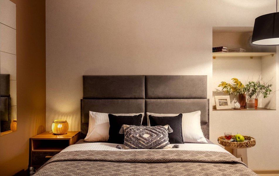 Апартаменты со стильным дизайнерским интерьером оформлены в светлых тонах и дополнены яркими акцентными деталями. Одна спальня укомплектована двуспальной кроватью и небольшим раскладным диваном, есть выход на балкон. Во второй установлены 2 односпальные кровати. В кухне оборудованы функциональное рабочее пространство для приготовления еды и компактная обеденная группа. Совмещенный санузел оснащен ванной и стиральной машиной. Можно подключиться к Wi-Fi.