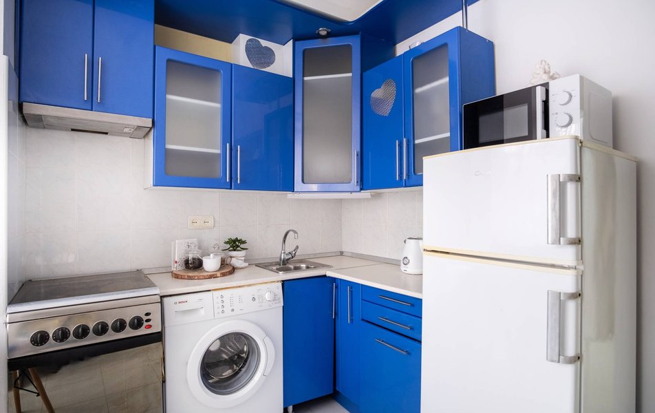 Уютные однокомнатные апартаменты размещены в многоэтажном жилом доме и вмещают до 4 гостей. На придомовой территории оборудованы детская площадка и парковочная зона. В соседних зданиях работают продуктовый магазин, аптека, пиццерия.