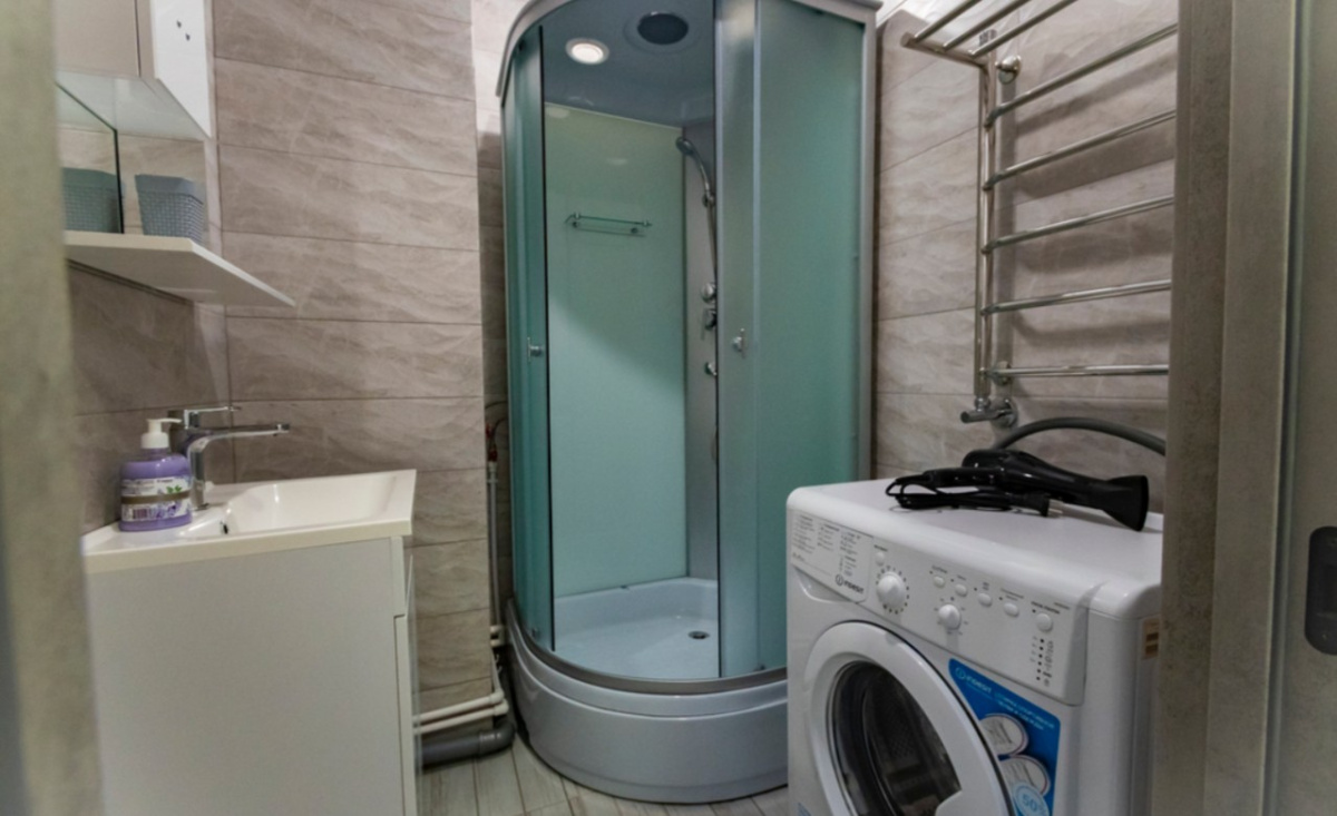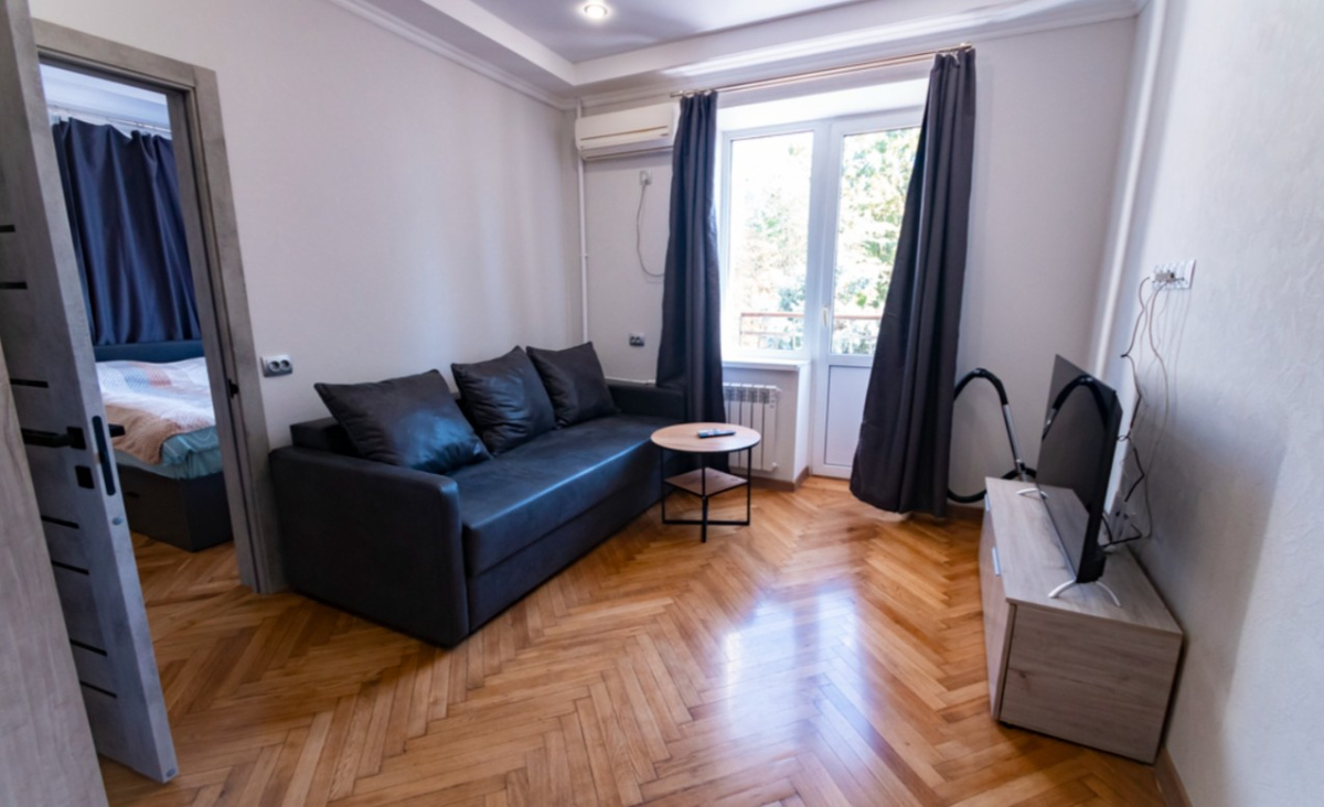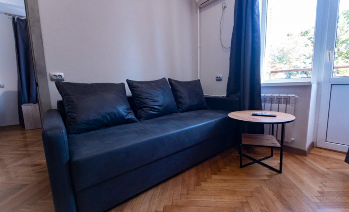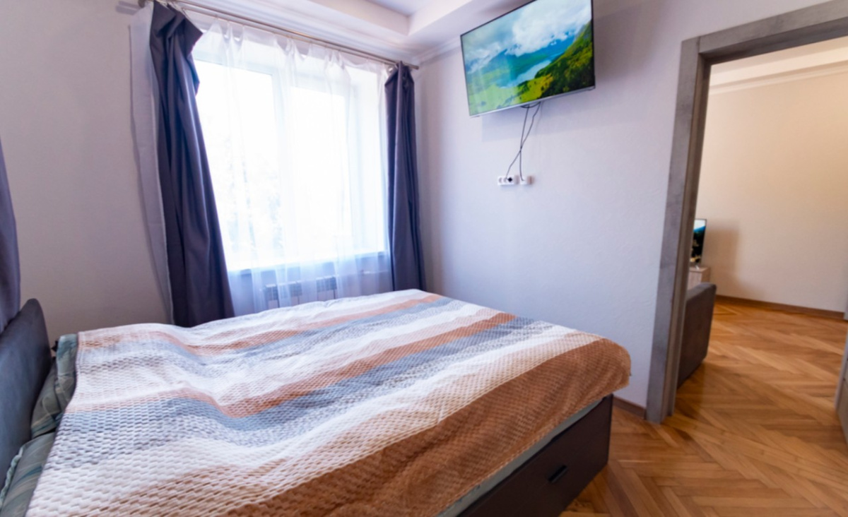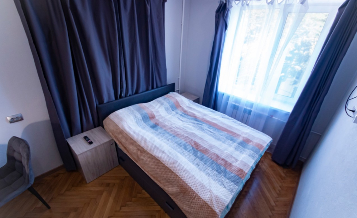 Пространство рассчитано на комфортное размещение 2–4 человек. В спальне установлена двуспальная кровать, в гостиной — раскладной диван (полноценное спальное место). Санузел раздельный, что удобно при совместном проживании нескольких гостей.