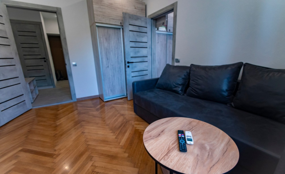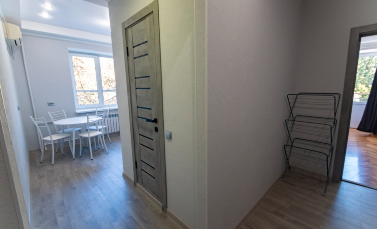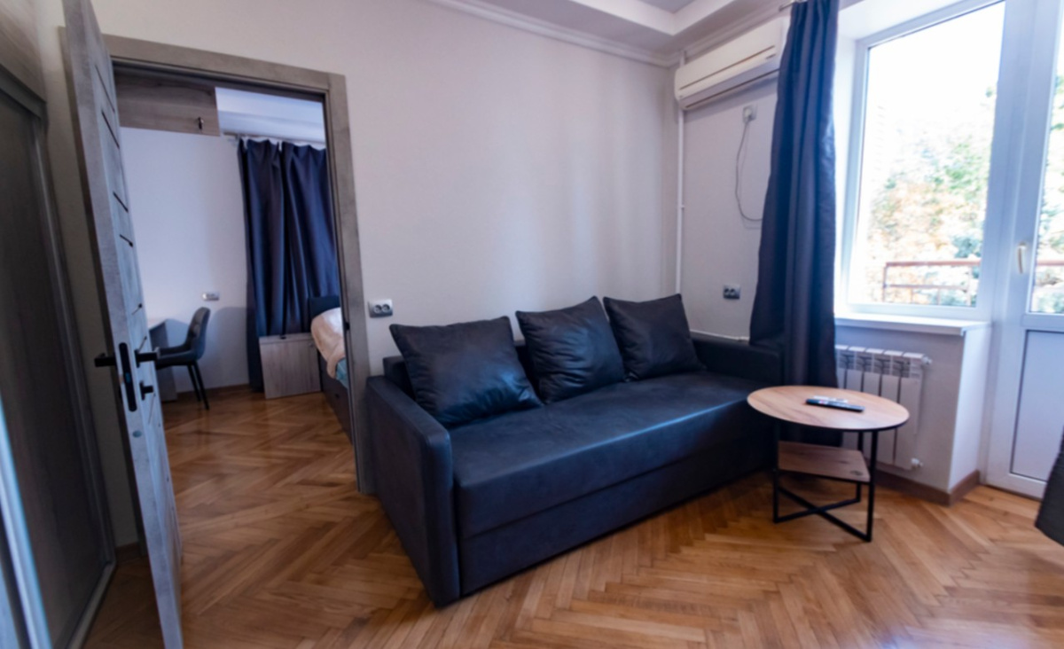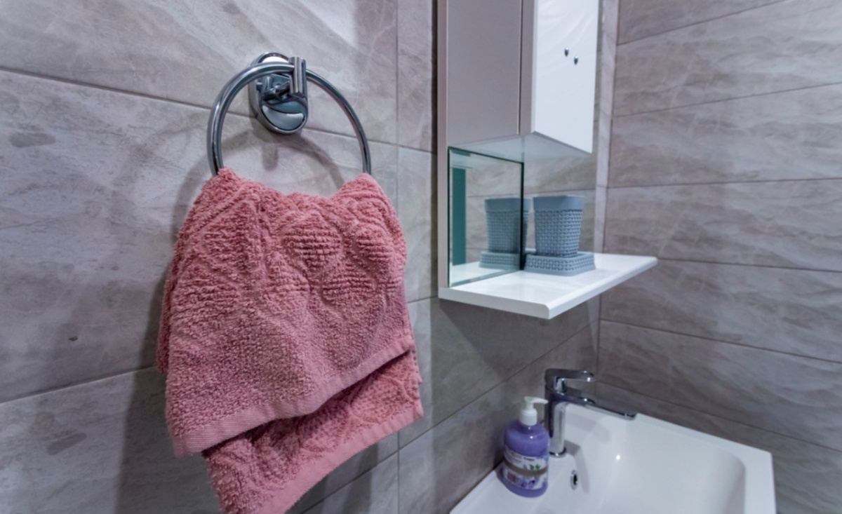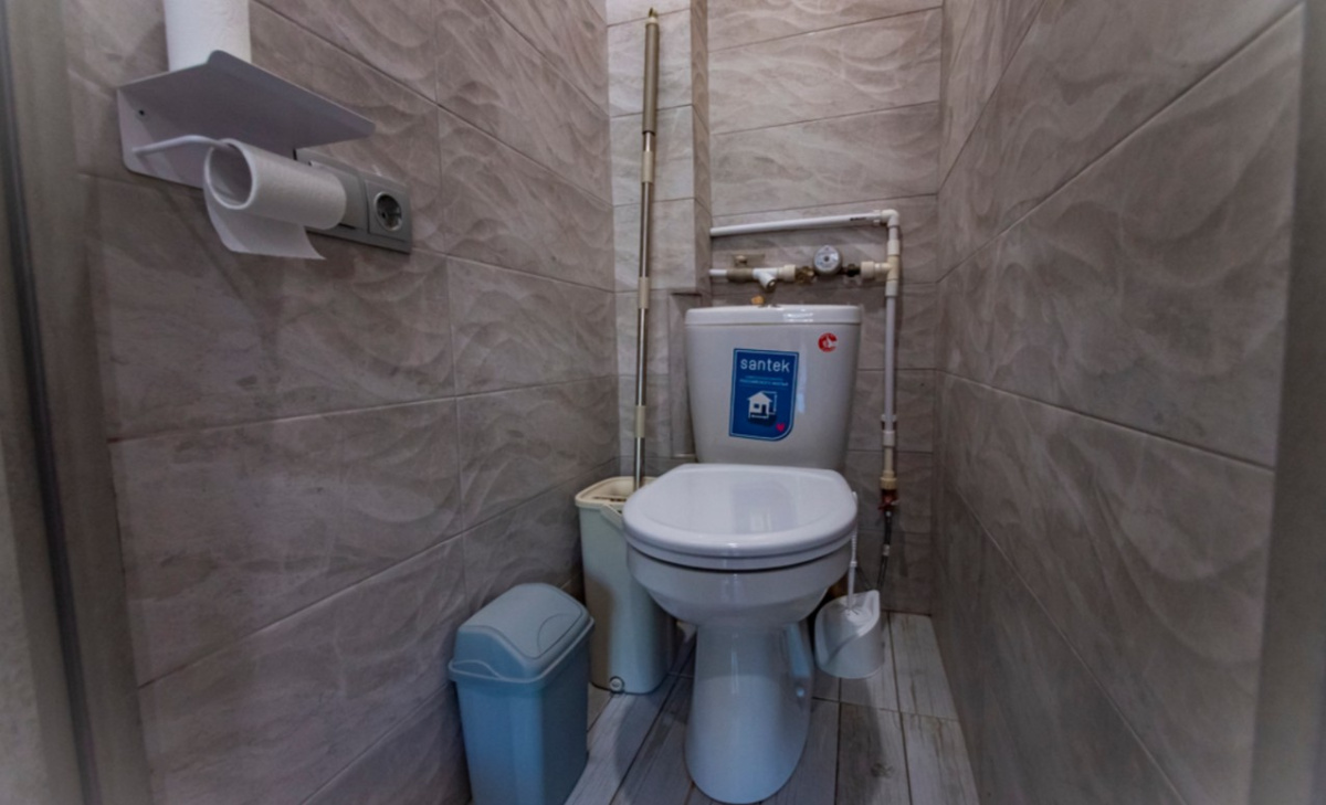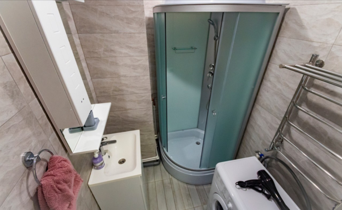 Пространство рассчитано на комфортное размещение 2–4 человек. В спальне установлена двуспальная кровать, в гостиной — раскладной диван (полноценное спальное место). Санузел раздельный, что удобно при совместном проживании нескольких гостей.