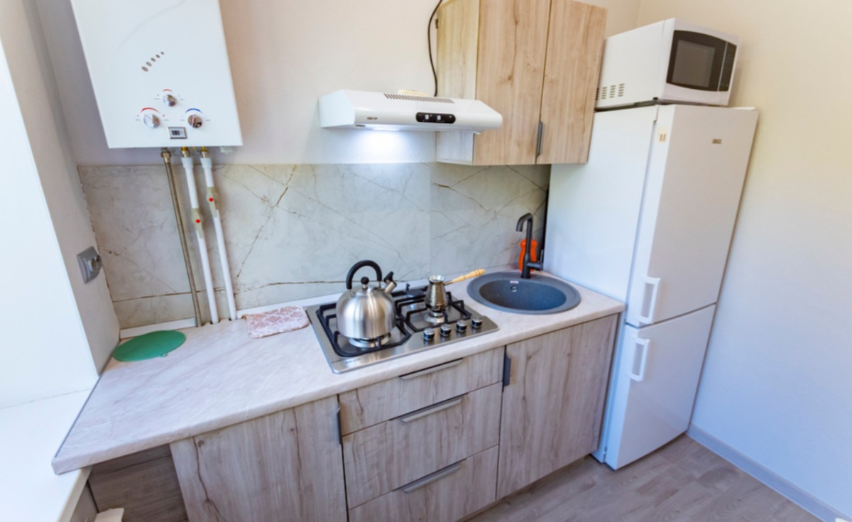 Квартира оснащена всей необходимой техникой: стиральная машина, кондиционер, два телевизора с доступом в интернет, высокоскоростной Wi-Fi. Есть современная кухня с газовой плитой, вытяжкой, микроволновой печью, холодильником и посудой.