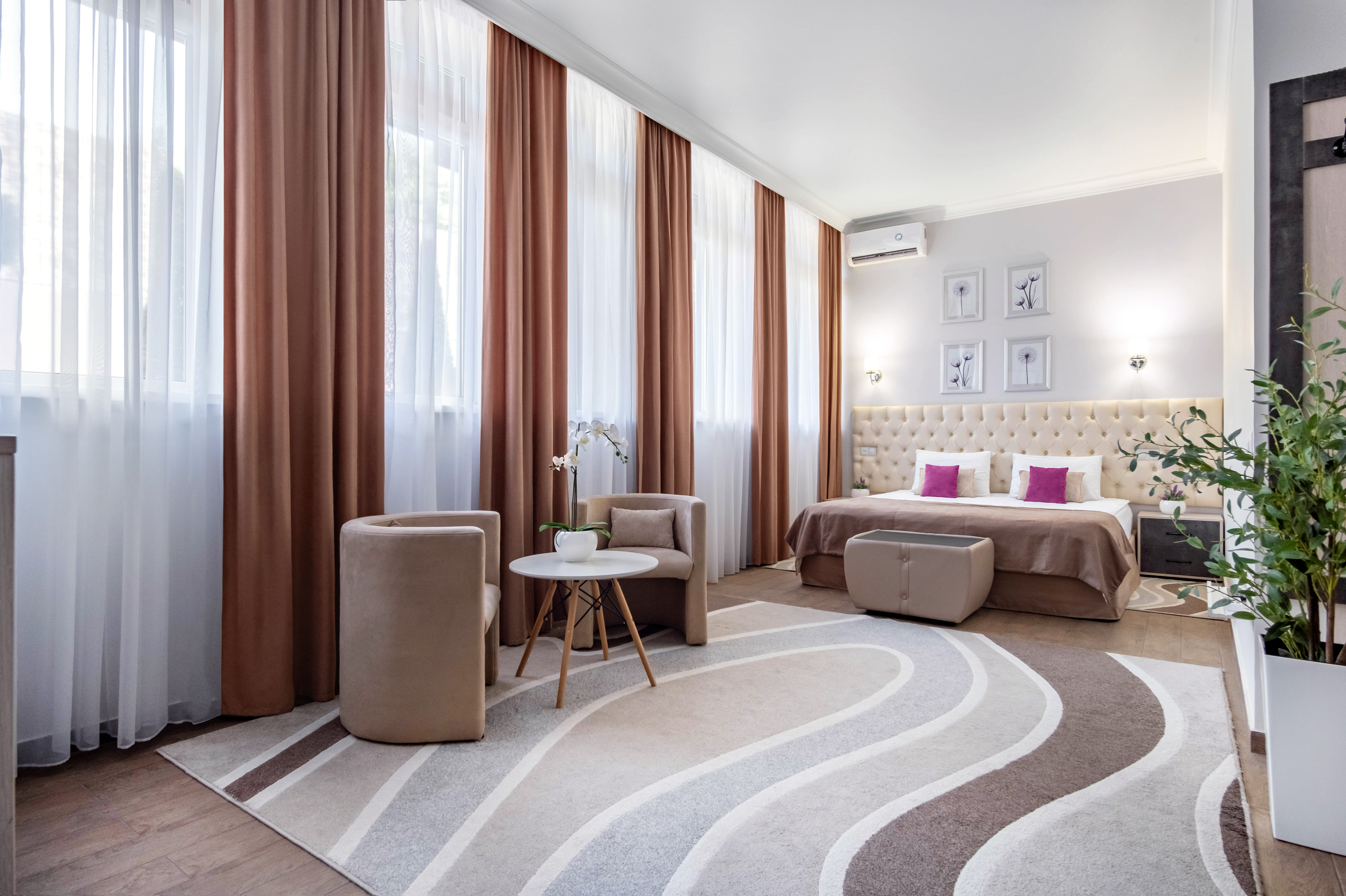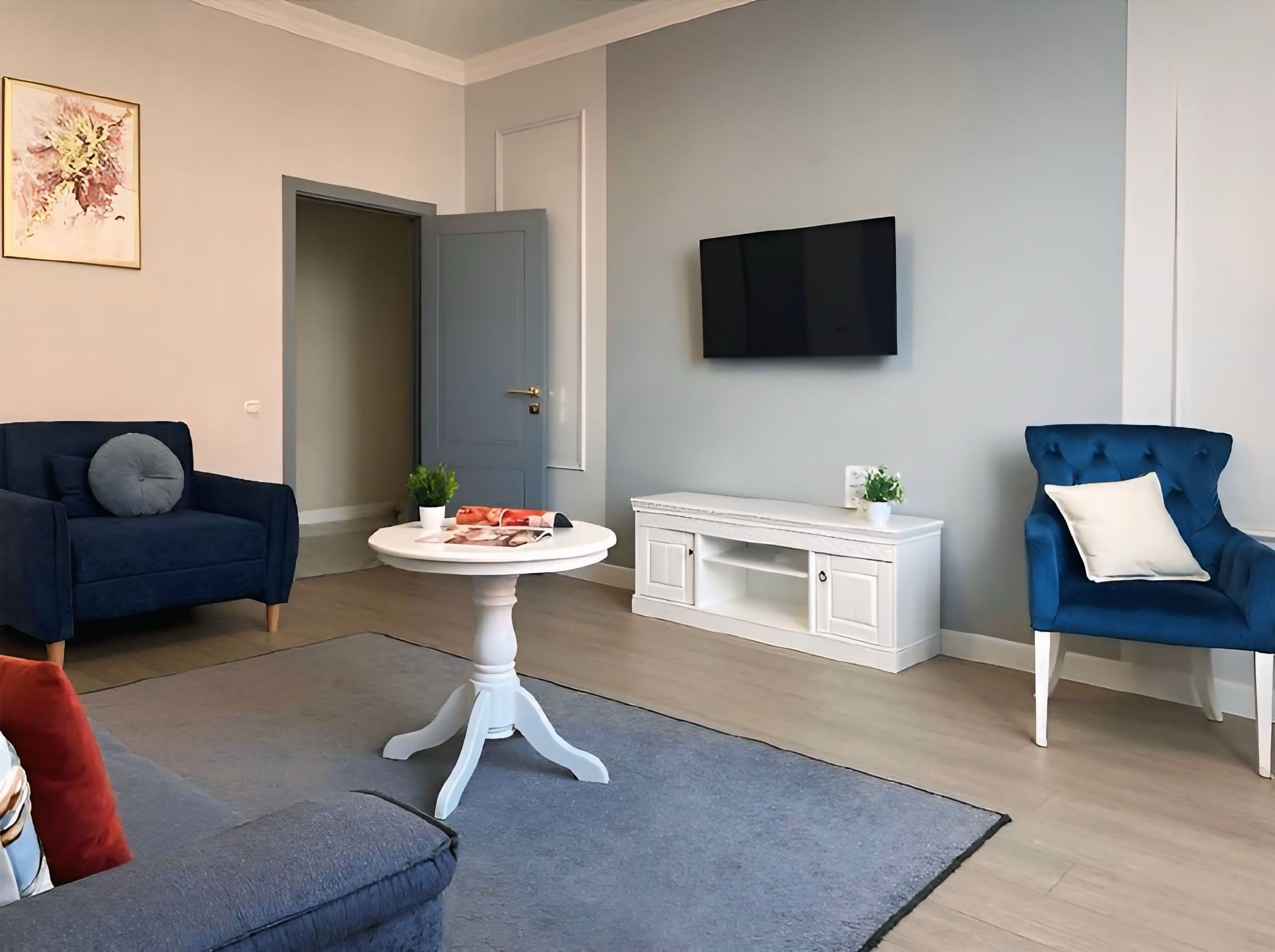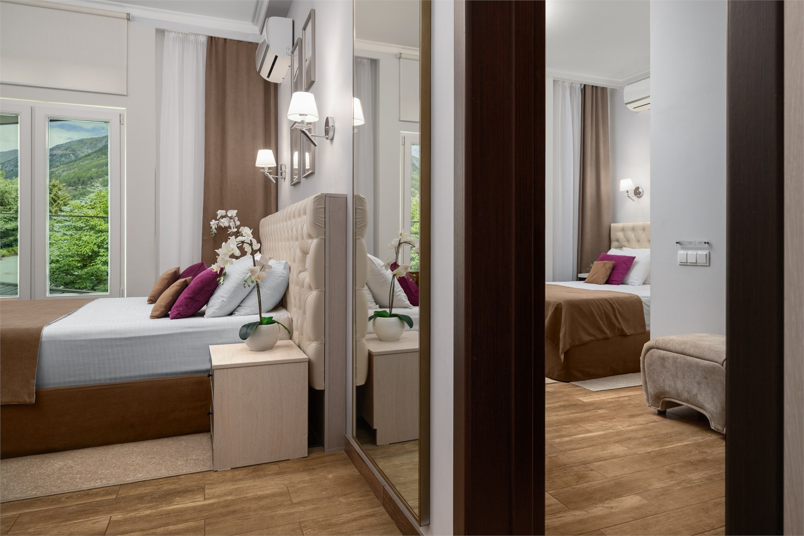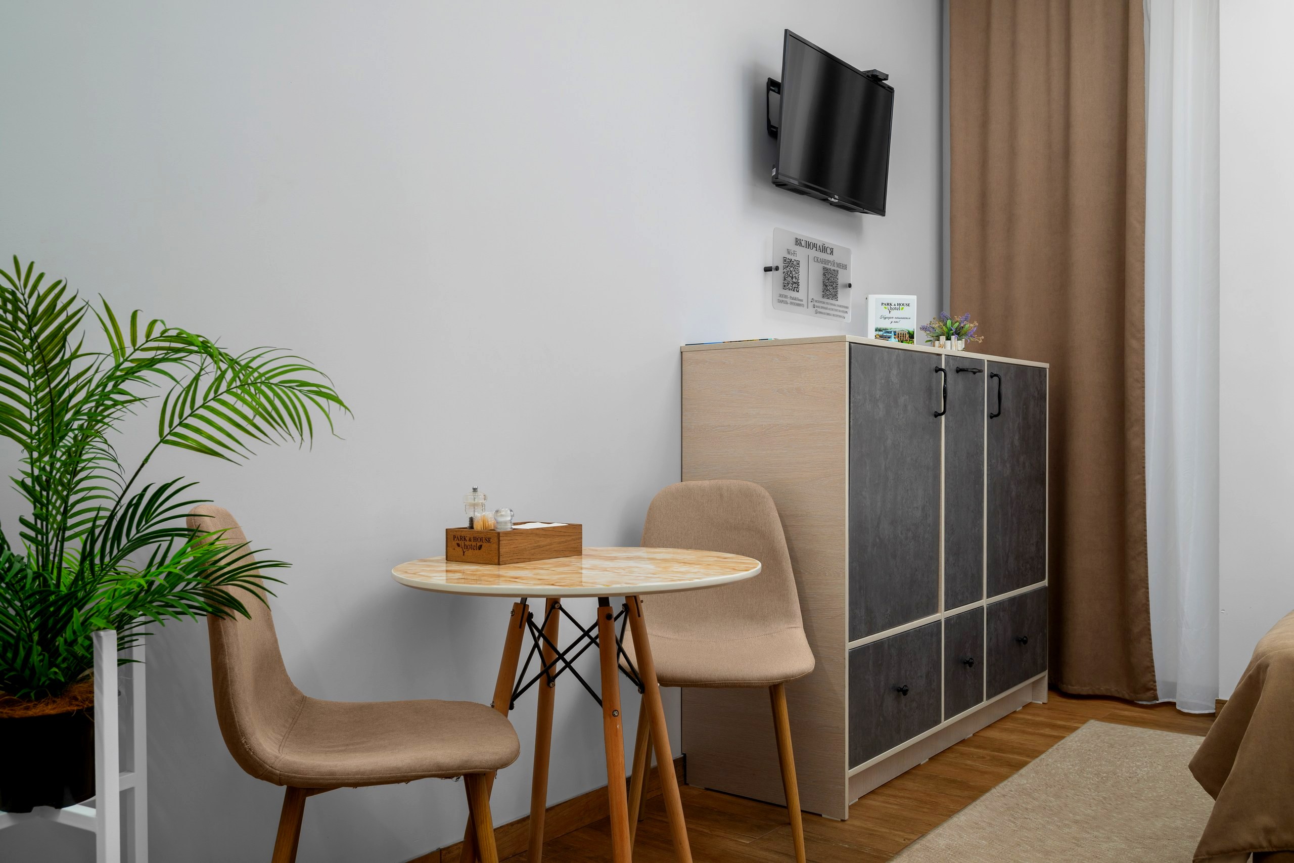 Гостей ожидают номера повышенной категории комфорта — Студио, Люкс и Апартаменты с кухней, расположенные в корпусе. И отдельный таунхаус, расположенный по адресу - ул. Маркова, 98. В номерах современный стильный интерьер, оформленный в пастельной цветовой гамме с использованием темных контрастных оттенков. В каждом номере есть санузел с туалетными принадлежностями, телевизор-ЖК, фен.