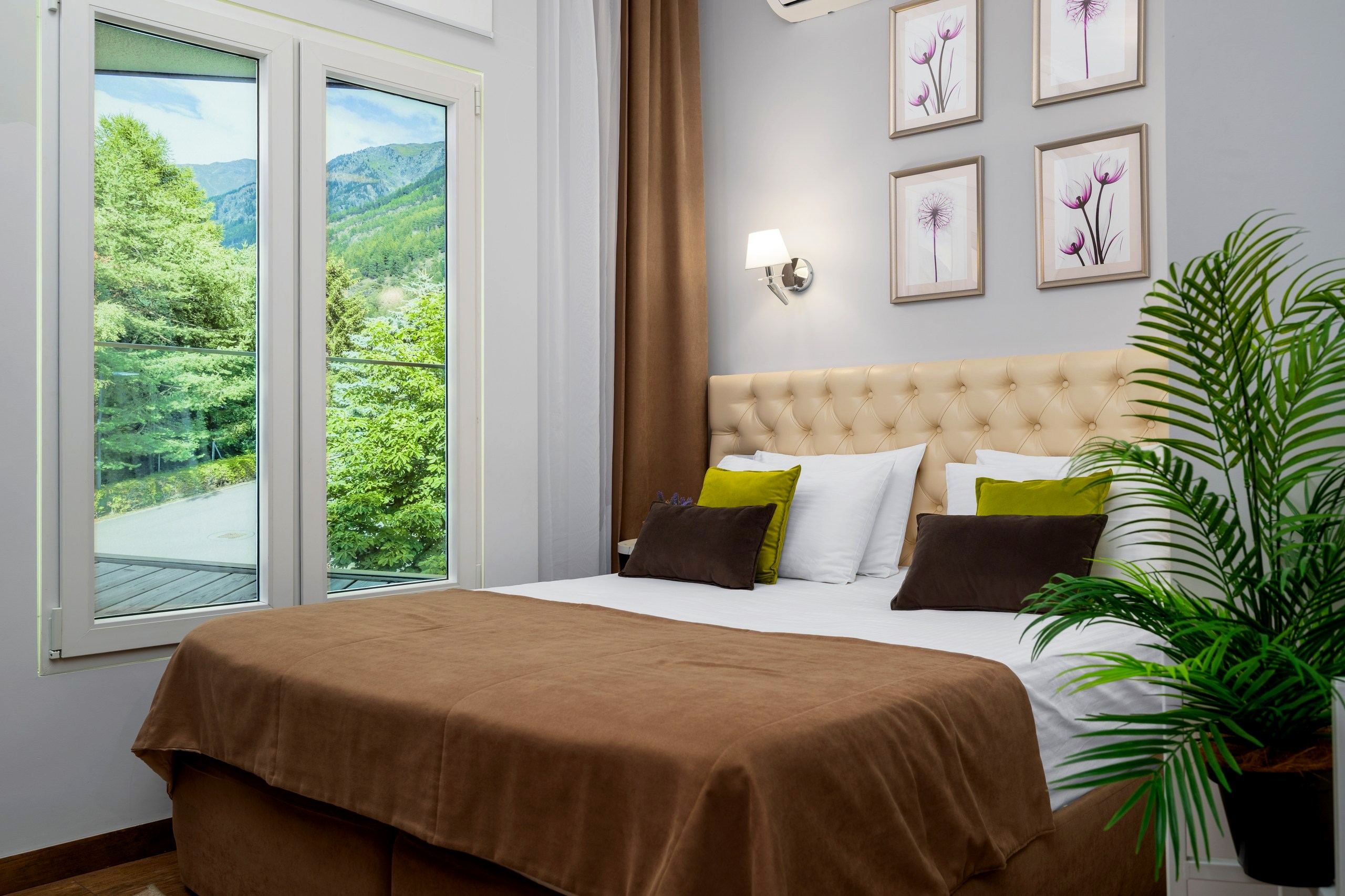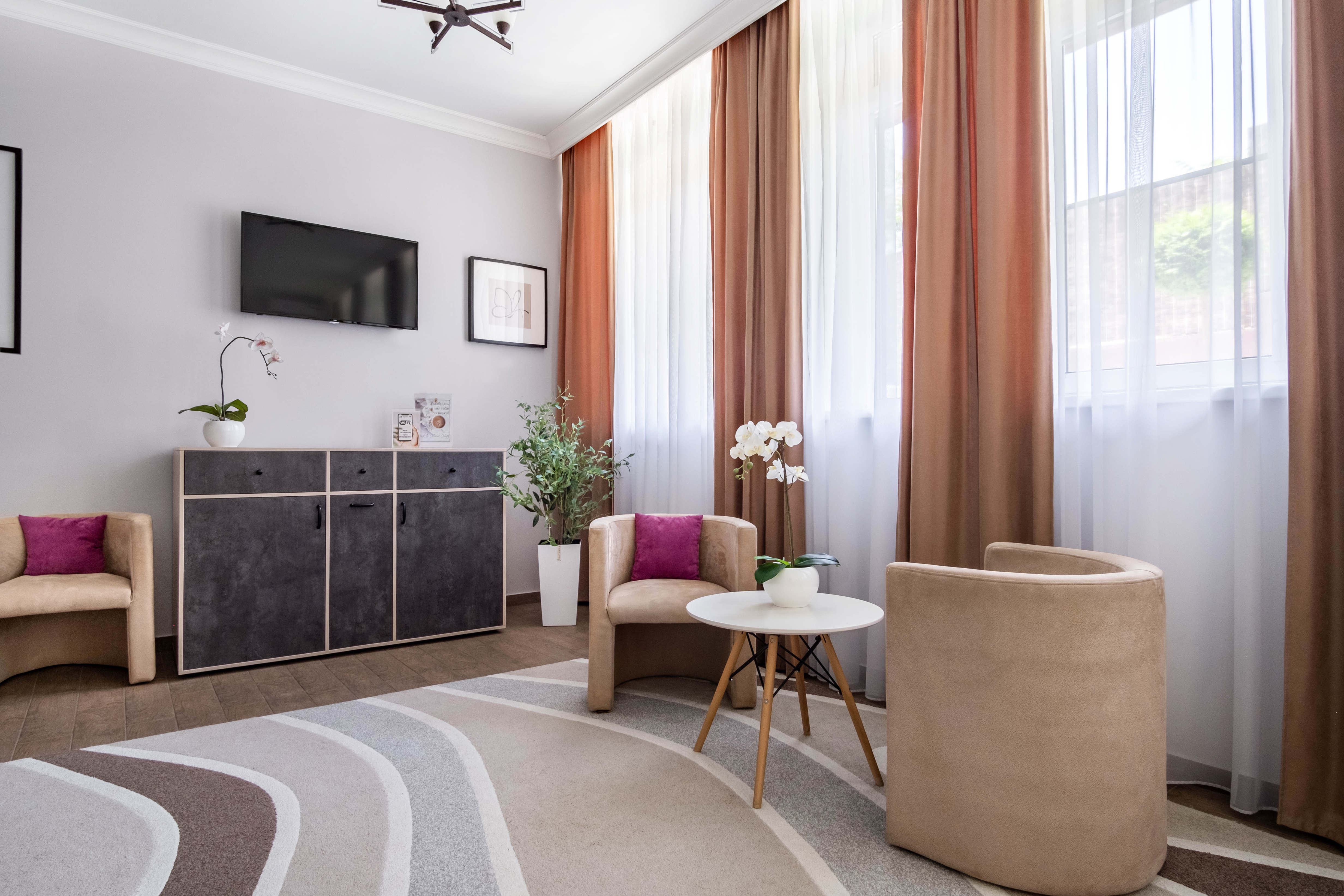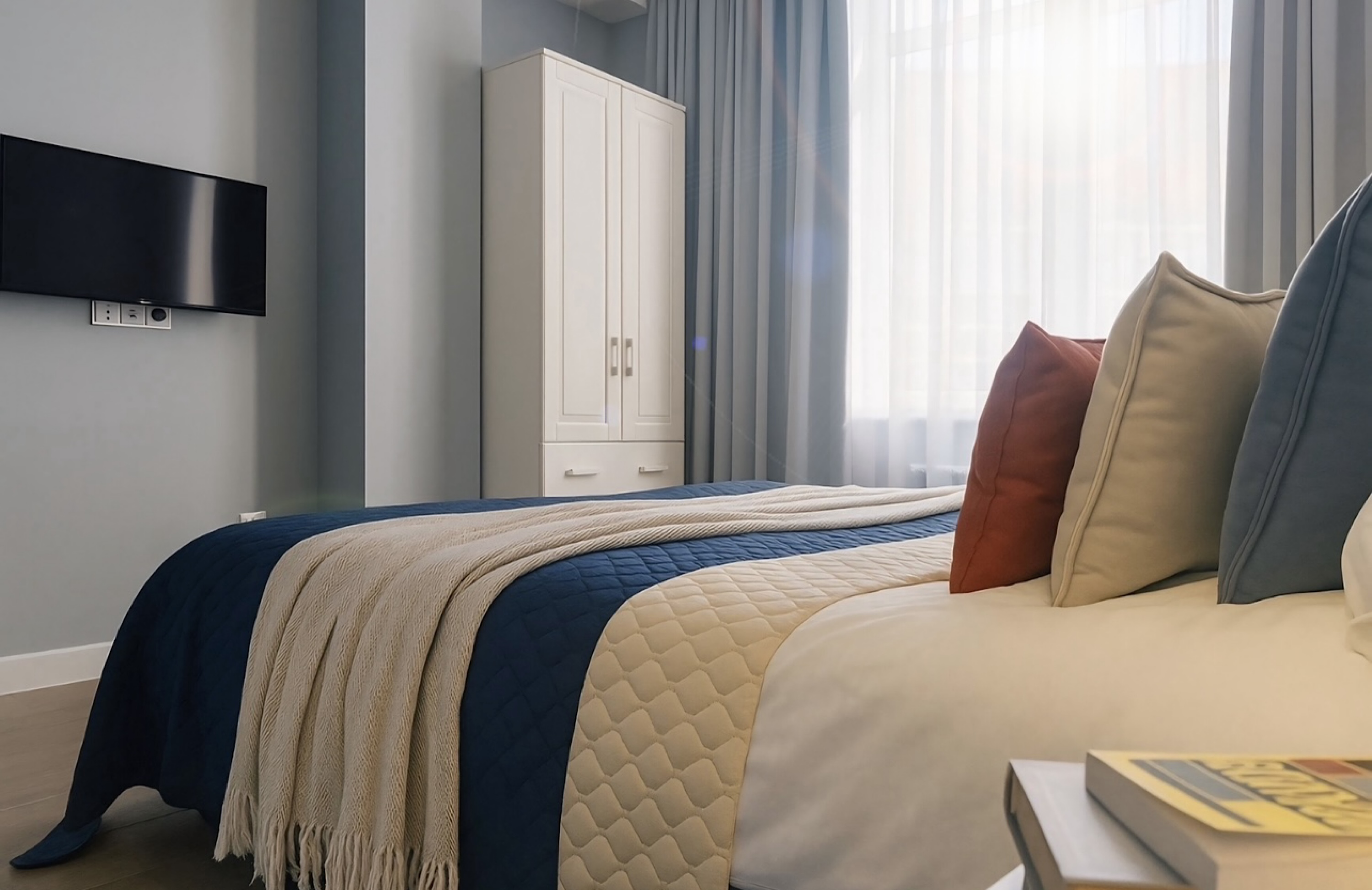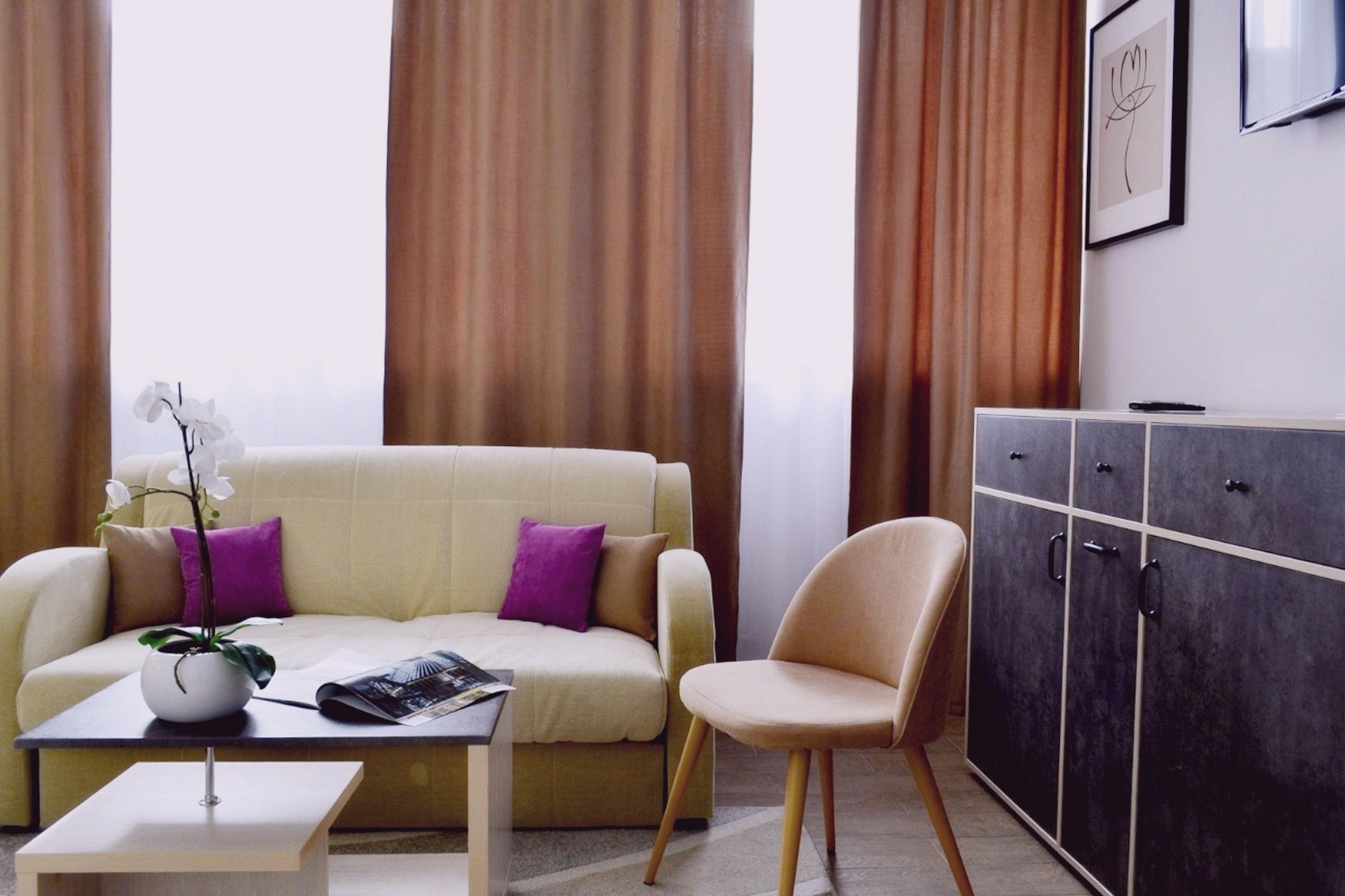 Гостей ожидают номера повышенной категории комфорта — Студио, Люкс и Апартаменты с кухней, расположенные в корпусе. И отдельный таунхаус, расположенный по адресу - ул. Маркова, 98. В номерах современный стильный интерьер, оформленный в пастельной цветовой гамме с использованием темных контрастных оттенков. В каждом номере есть санузел с туалетными принадлежностями, телевизор-ЖК, фен.
