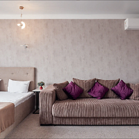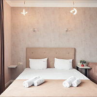 Номерной фонд разного уровня вместимости и комфорта расположился в 4-этажном здании. Все комнаты просторные, с современным ремонтом. Для удобства гостей установлены удобная кровать, шкаф, прикроватные тумбочки, есть рабочая зона, телевизор, кондиционер, работает Wi-Fi. Санузел с ванной или душем, тапочками, полотенцами и туалетно-косметическими принадлежностями.