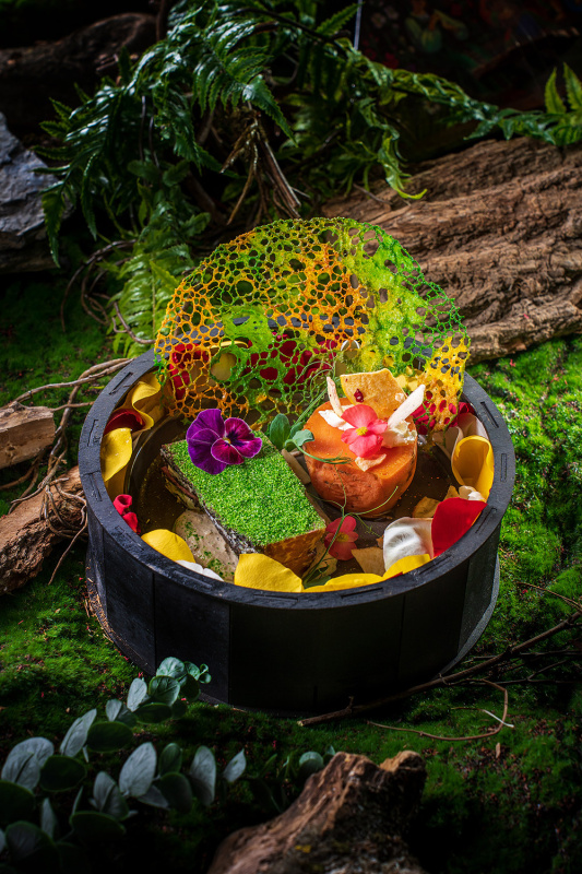 В цену проживания включён завтрак «шведский стол» в ресторане отеля Green Wood. Гости в отзывах отмечают атмосферный дизайн ресторана, напоминающий сказочный лес, и изюминку завтрака в виде шампанского и бутербродов с красной икрой.