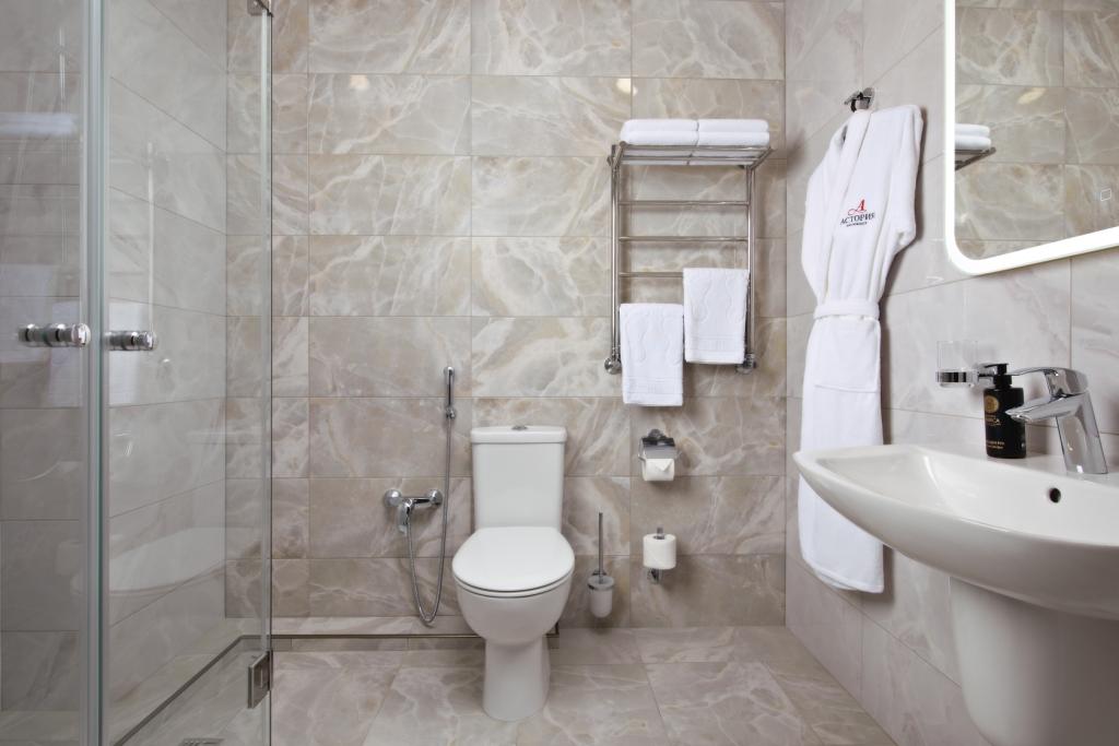 Отель «Астория» расположен в 9 минутах ходьбы от Кисловодской бальнеогрязелечебницы «Октябрьские ванны», где проводятся процедуры с использованием минеральных вод и лечебной грязи озера Тамбукан. Здесь доступны нарзанные, йодобромные и углекислые ванны, грязевые аппликации, обёртывания, ингаляции, озонотерапия, гелиокс-терапия, аппаратная физиотерапия и массажи.
