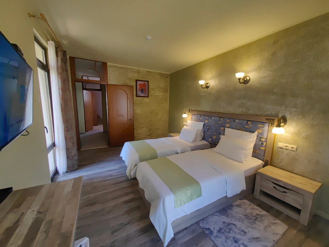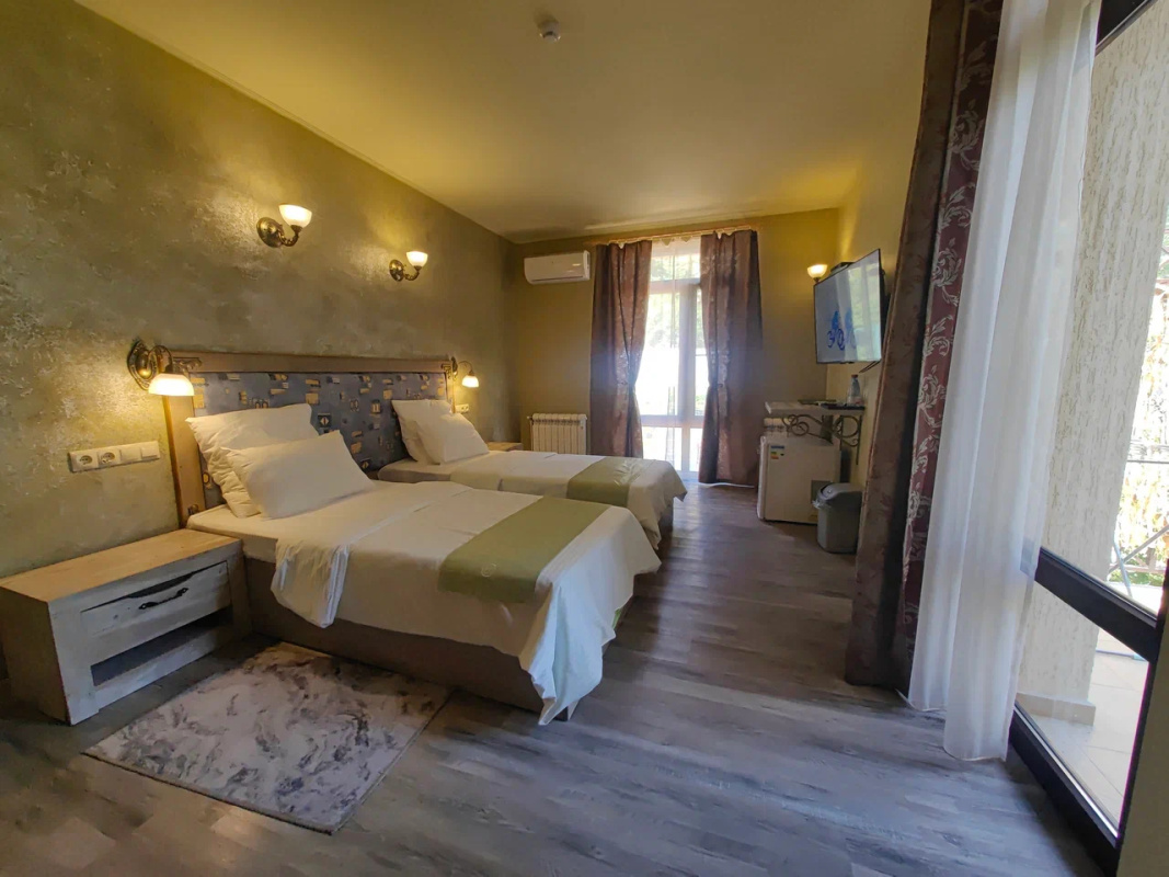 Уютный двухэтажный дома занимает закрытую территорию возле лесной полосы. В распоряжении гостей стильные светлые номера, оформленные в популярном стиле лофт. Все номера оснащены персональным санузлом с душем, в комнатах есть телевизор-ЖК и кондиционер, поддерживающий комфортную температуру в помещении.