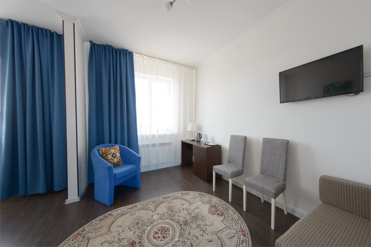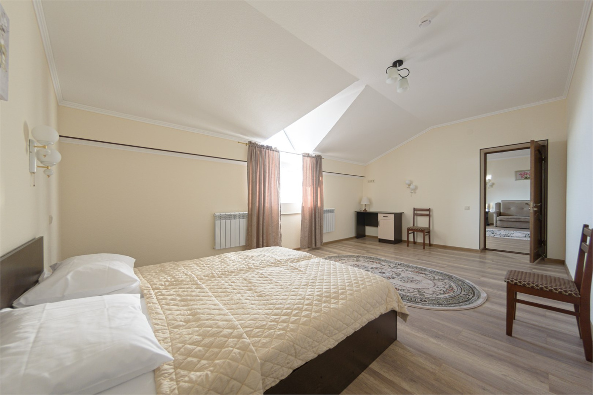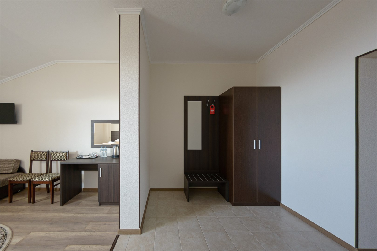 Комплекс предлагает размещение в 60 номерах и апартаментах. На благоустроенной территории есть собственная автостоянка.