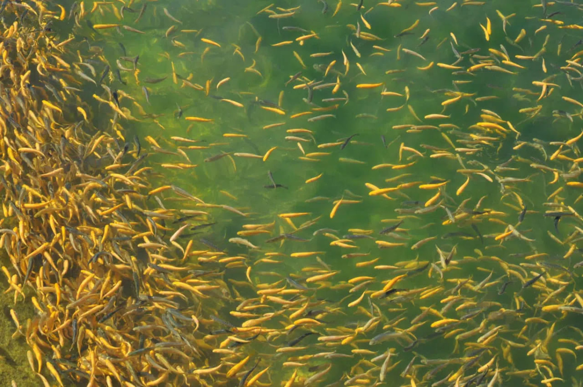 В фирменном магазине продается свежая живая рыба, которую можно приобрести с собой.