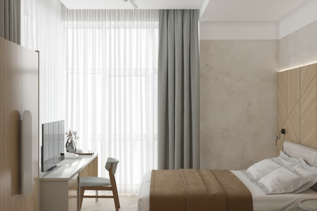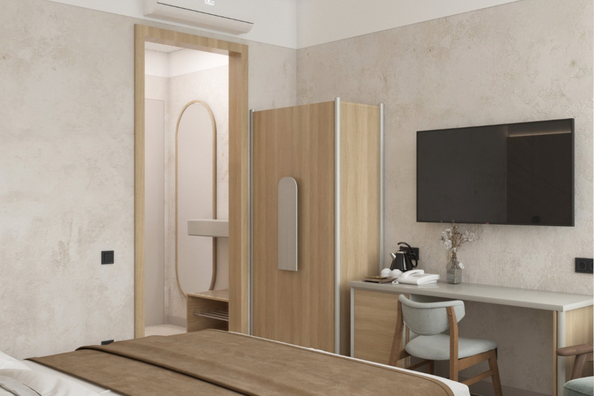 Номера располагаются в 4-этажном корпусе. В комнатах выполнен современный ремонт. Каждый номер имеет свой уникальный дизайн и стиль оформления. Wi-Fi, телевидение, кондиционирование воздуха, душ, фены, халаты и тапочки, холодильники, односпальные и двуспальные кровати, электрические чайники, чайные наборы: все эти удобства доступны гостям отеля. Санузел с душевой кабиной.