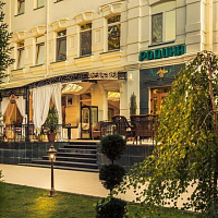Трехэтажное здание отеля с нарядным фасадом и большим окнами занимает благоустроенную территорию с внутренним двориком, в котором устроен красивый фонтан и разбит фруктовый сад. Гостей ожидают современные номера разных категорий с классическими интерьерами. В номерах есть кондиционер, телевизор-ЖК, а в ванных комнатах для отдыхающих подготовлены косметические наборы.