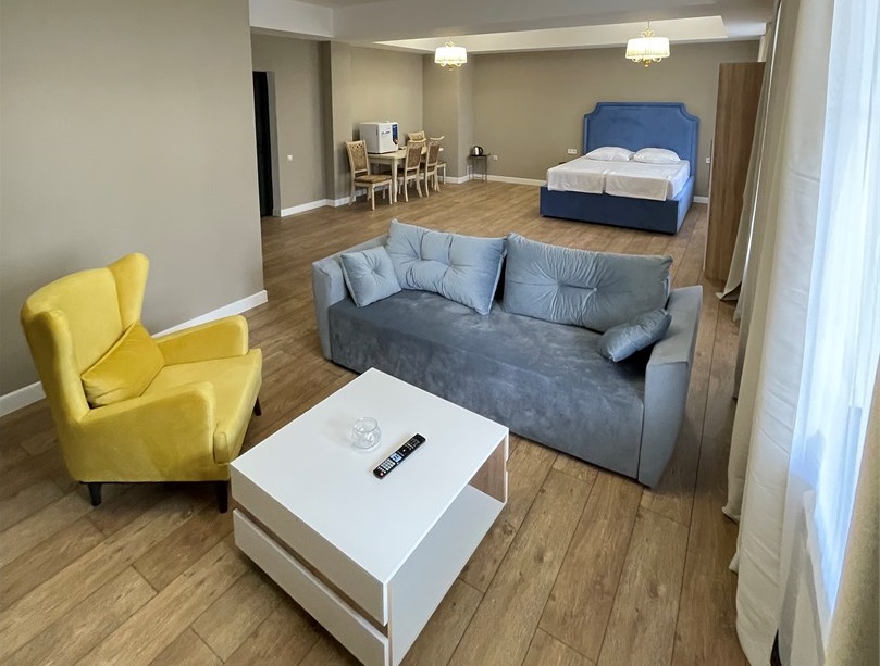 Номерной фонд располагается в 3-этажном здании. В комнатах установлена удобная мебель для отдыха, есть телевизор, кондиционер, мини-холодильник, Wi-Fi. Санузел индивидуальный, с душем, полотенцами и туалетными принадлежностями.