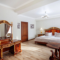 Просторные номера различных категорий — от уютных Стандартов до роскошных Апартаментов с кухней и джакузи. Интерьеры выполнены в классическом стиле, все номера оснащены современной техникой и всем необходимым для комфортного проживания: кондиционер, телевизор, мини-бар, фен, полотенца, халаты, тапочки.