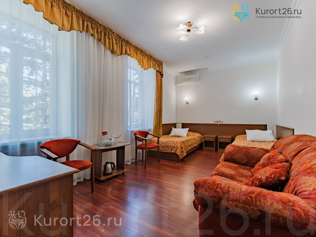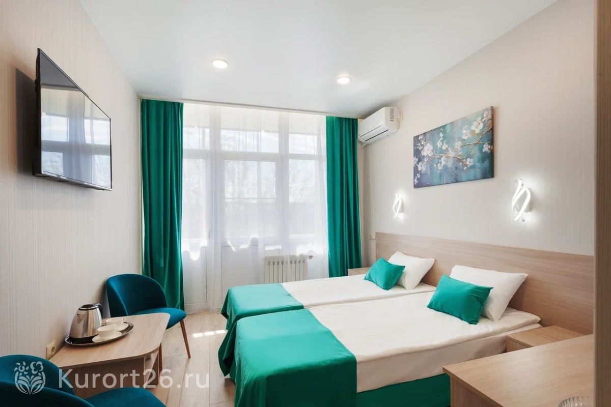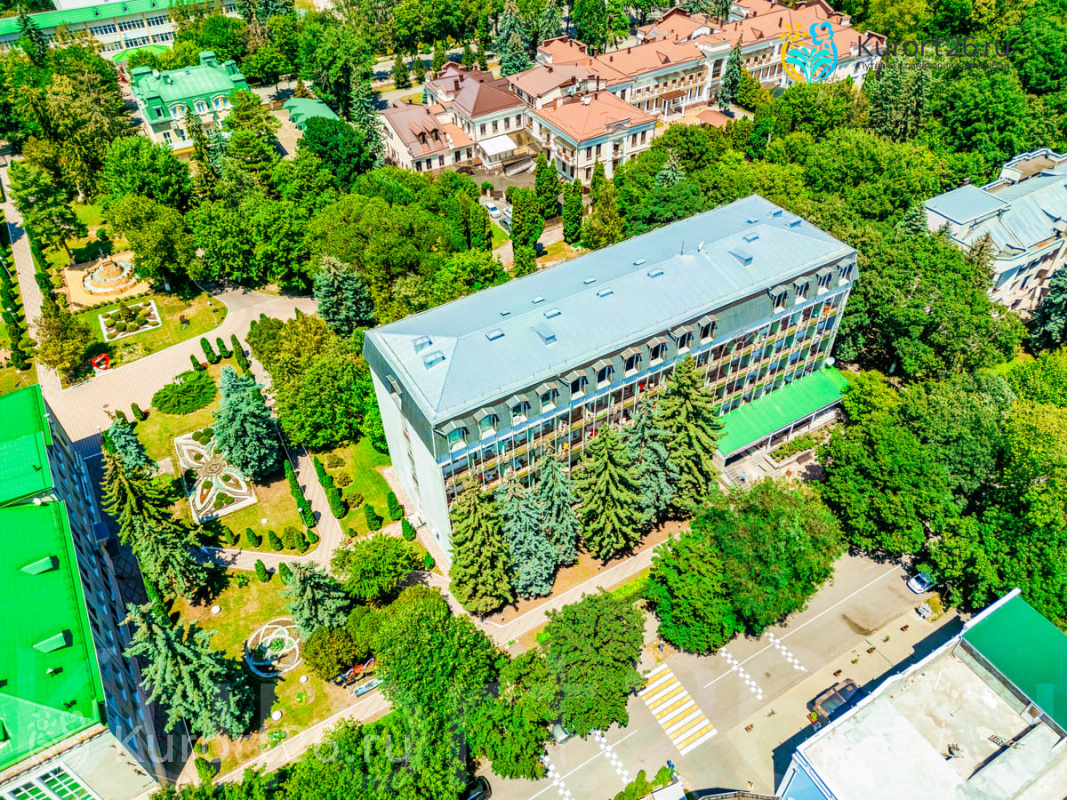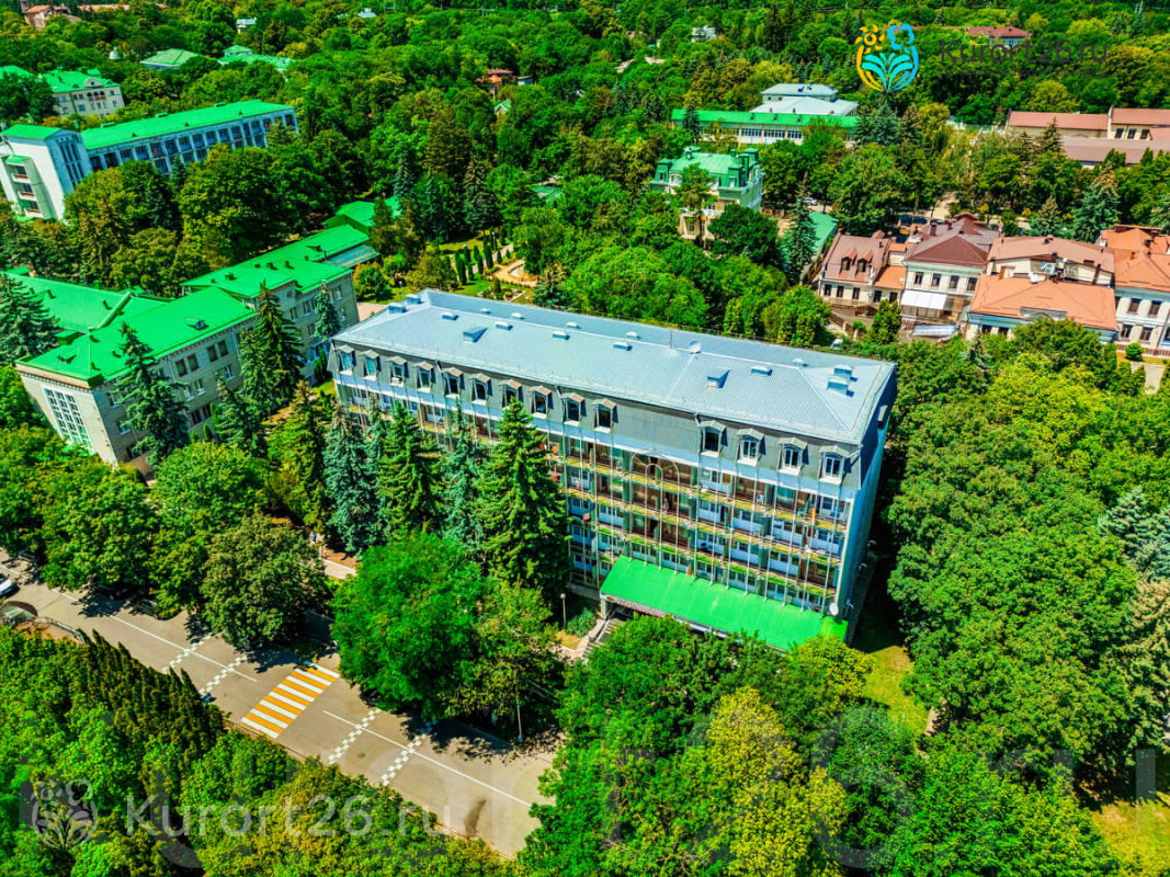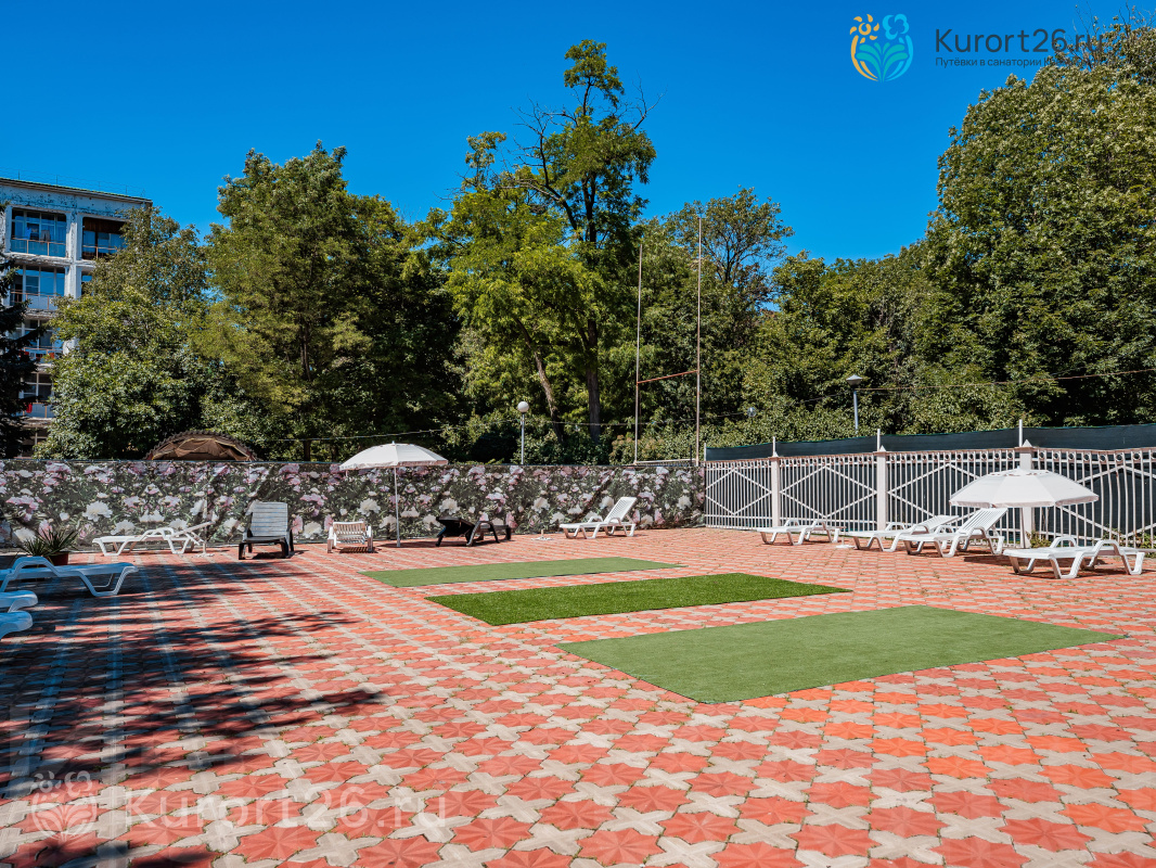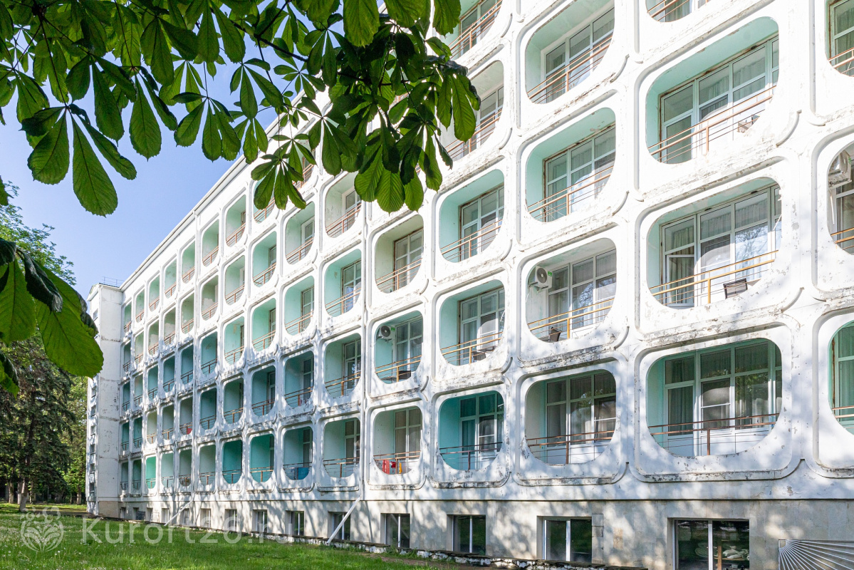 - Санаторий между двумя парками: Курортным парком (430 м) и Парком Победы (490 м)
