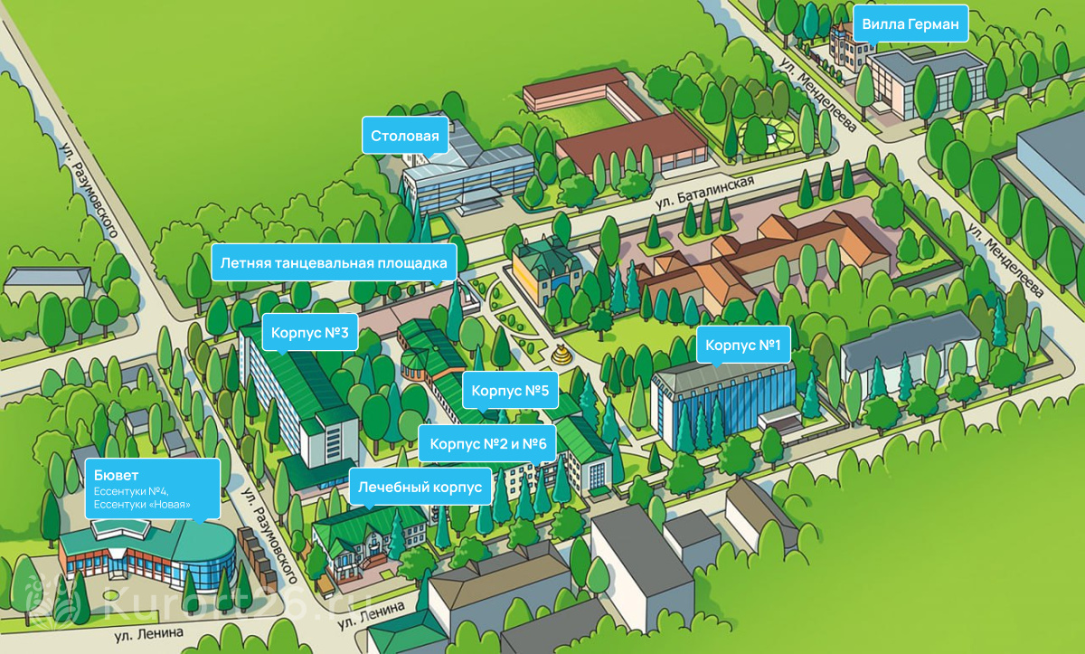 - Бювет источников «Ессентуки 4» и «Ессентуки Новая» напротив санатория