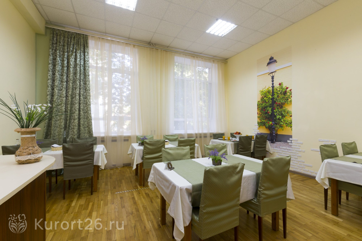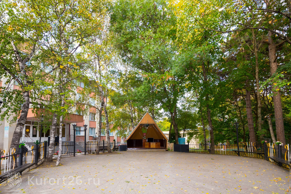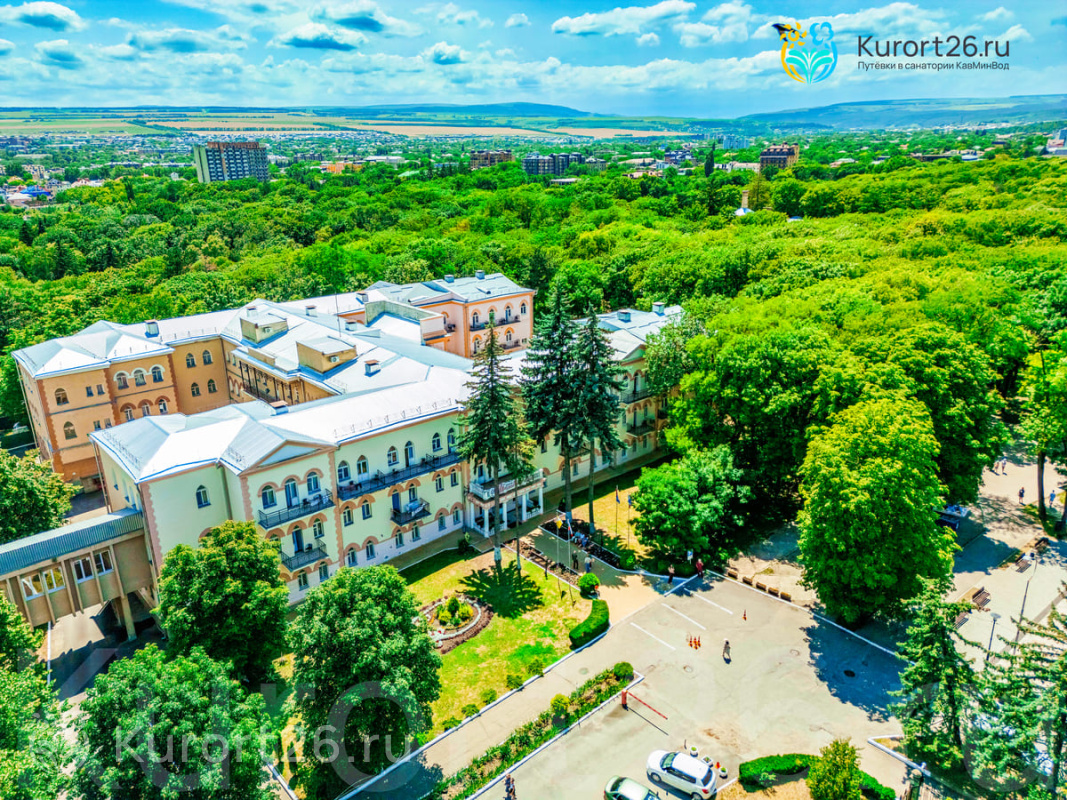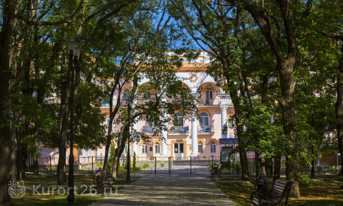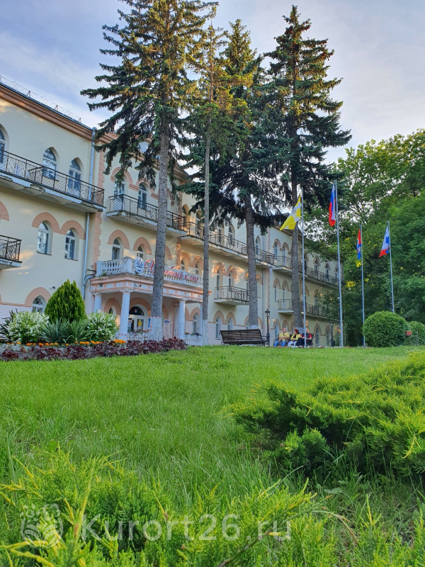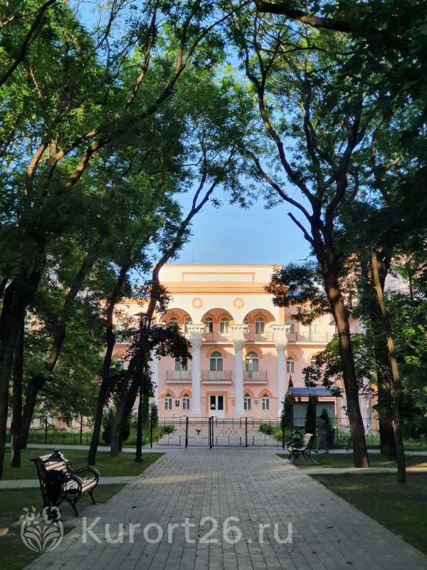 - Санаторий на территории Курортного парка. В шаговой доступности: бюветы Ессентуки № 4 и Ессентуки № 17, Николаевские ванны, грязелечебница им. Семашко, концертный зал им. Шаляпина