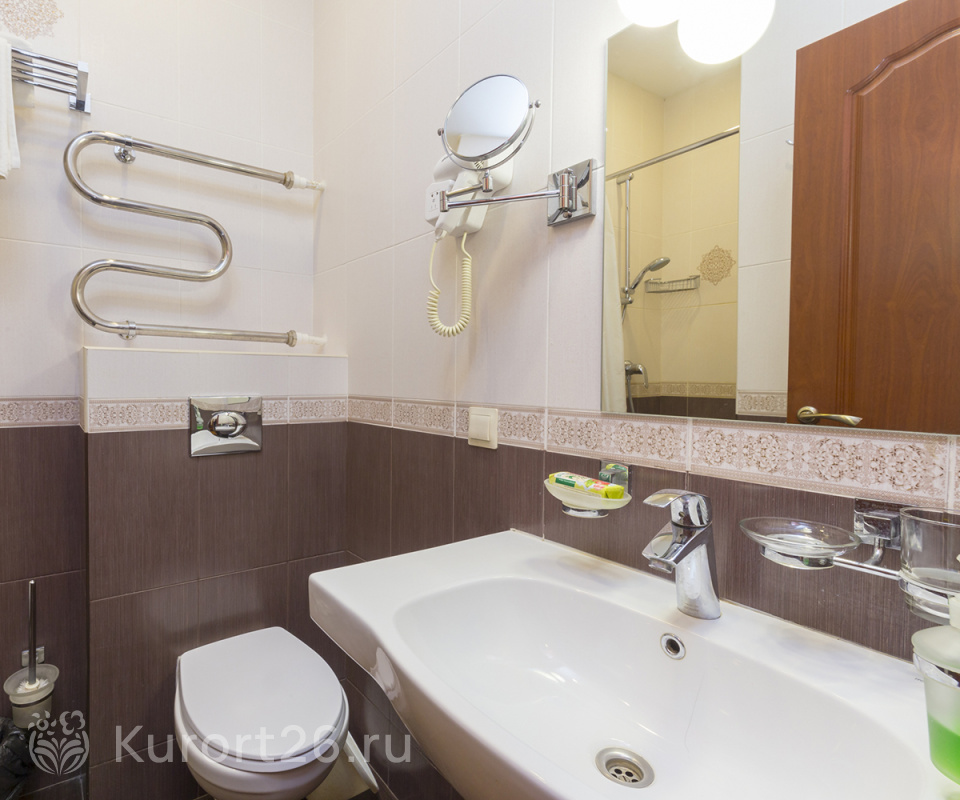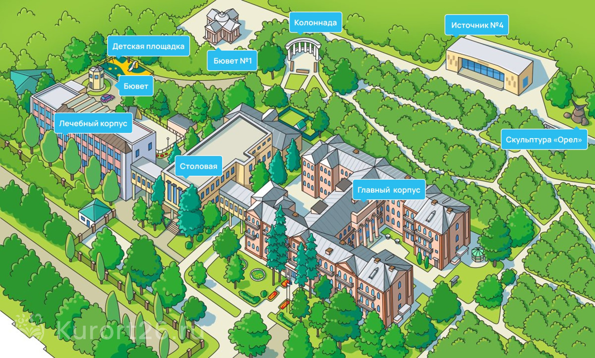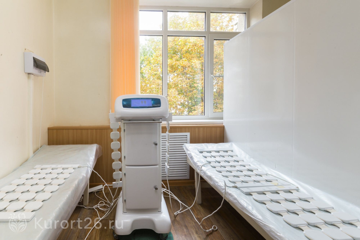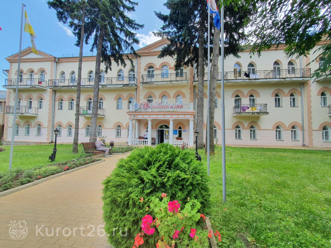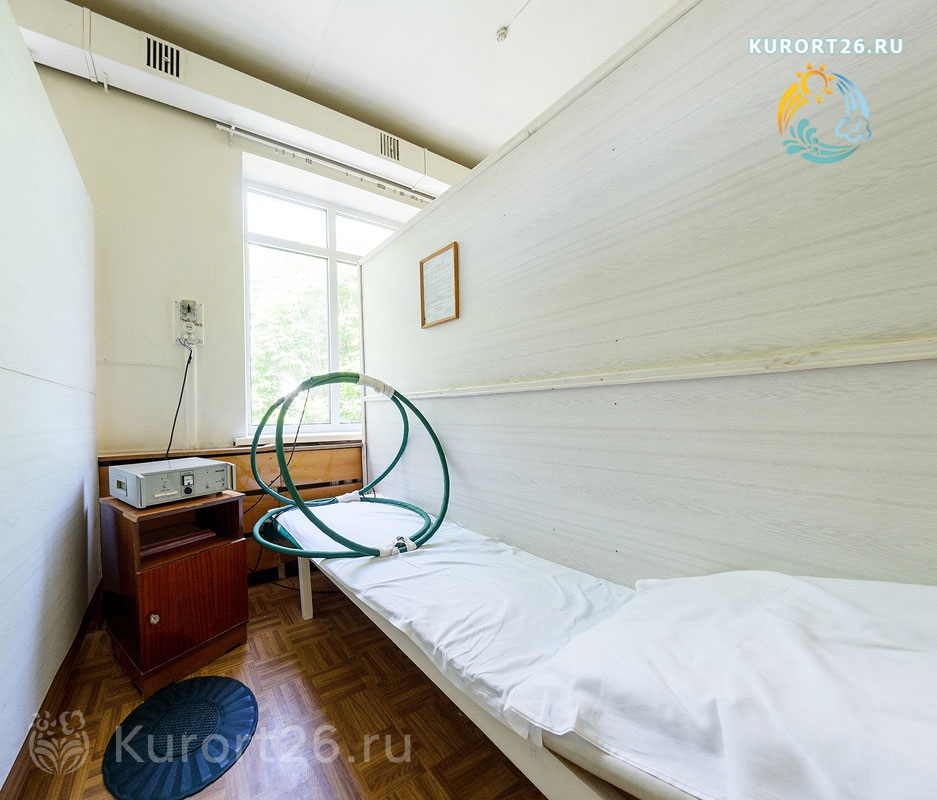 - Санаторий на территории Курортного парка. В шаговой доступности: бюветы Ессентуки № 4 и Ессентуки № 17, Николаевские ванны, грязелечебница им. Семашко, концертный зал им. Шаляпина