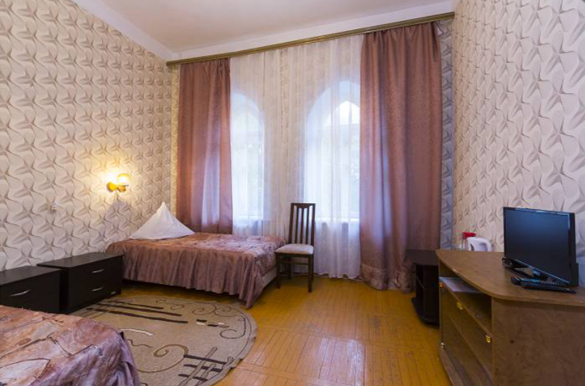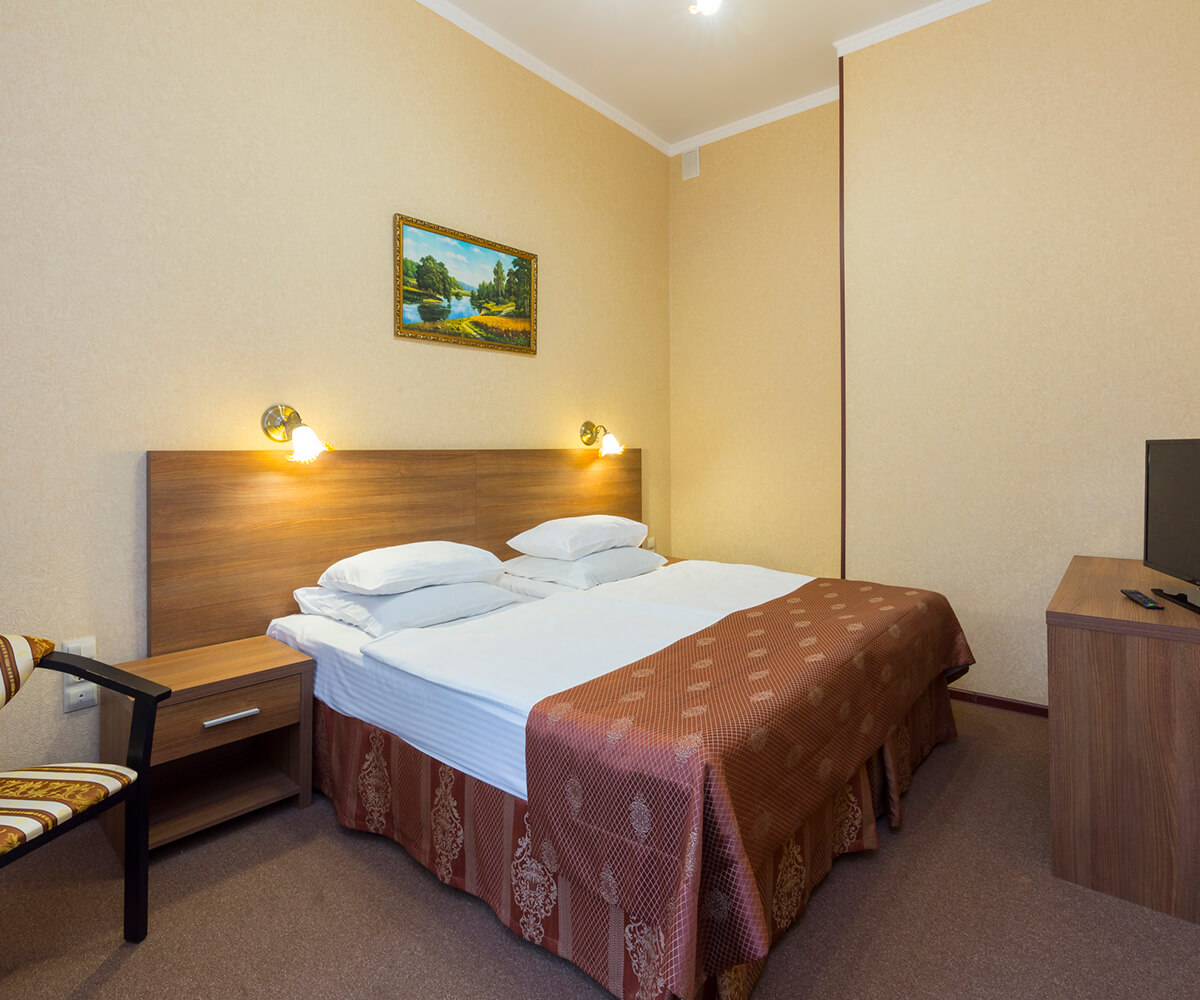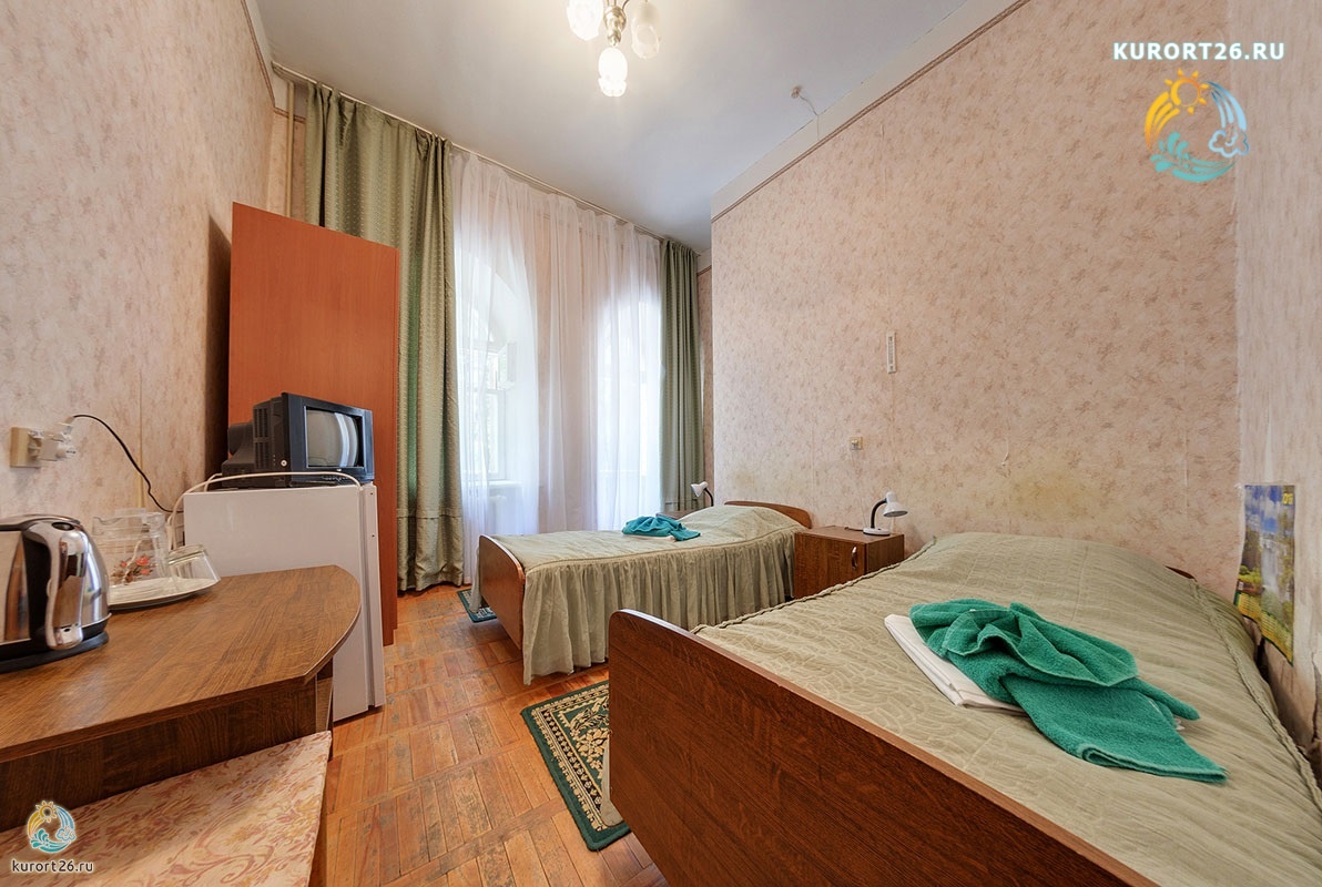 телевизор, шкаф, набор полотенец, две односпальные кровати