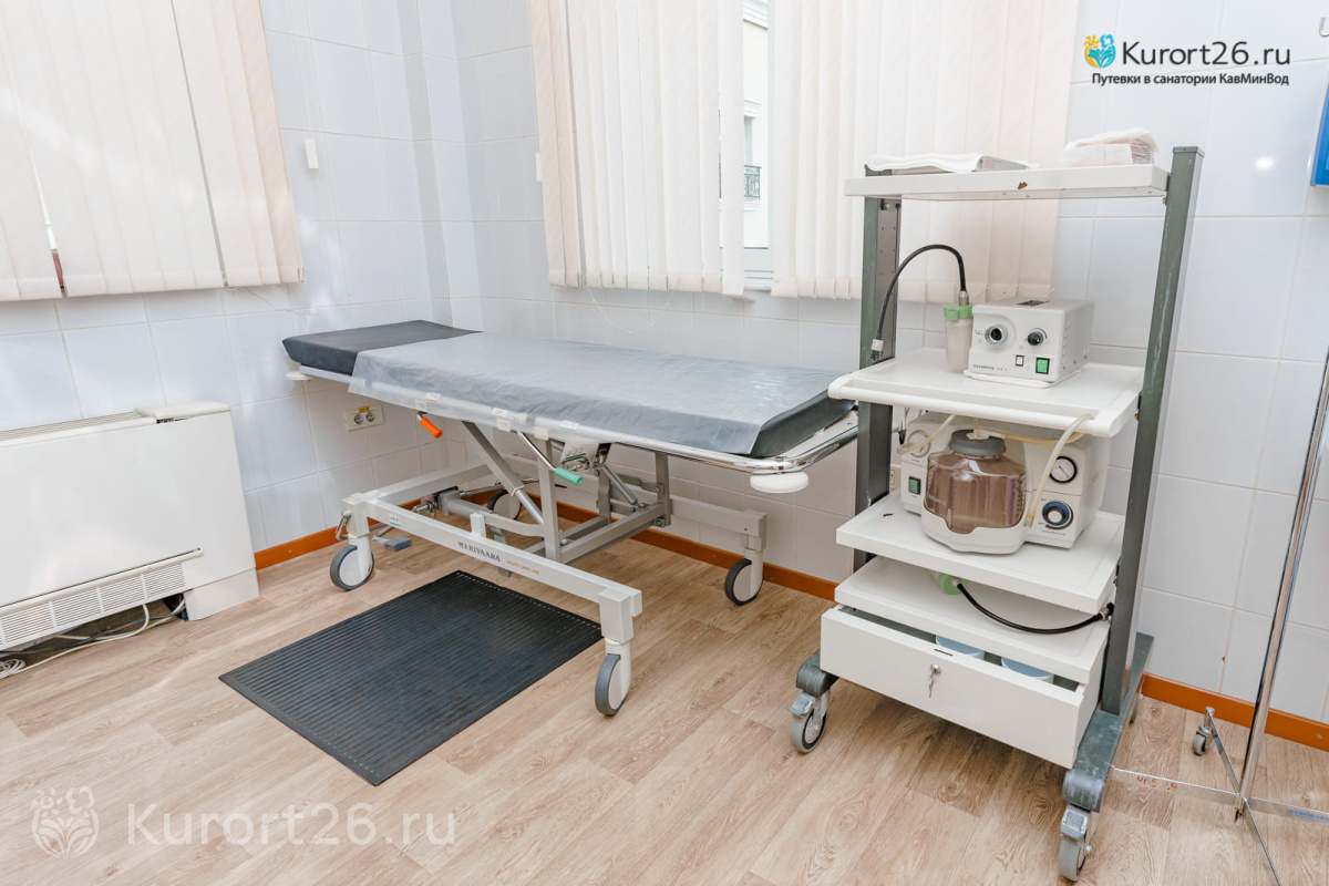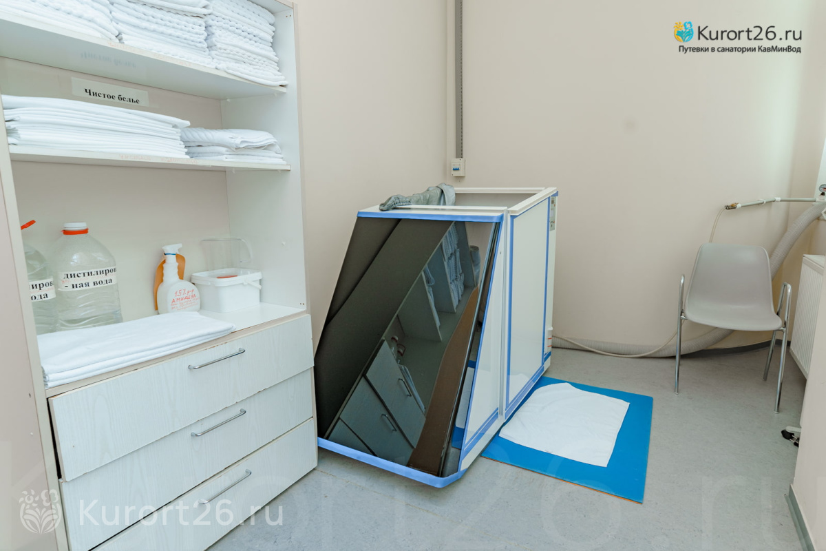 Медицинский центр работает без выходных с 08:00 до 18:00. Основные направления лечения: заболевания ЖКТ, эндокринной системы и опорно-двигательного аппарата. Среди процедур: 19 видов лечебных ванн, включая природные углекисло-минеральные и нафталановые, 26 видов физиолечения, грязелечение, различные виды массажа. Также в санатории работает косметологический кабинет.
