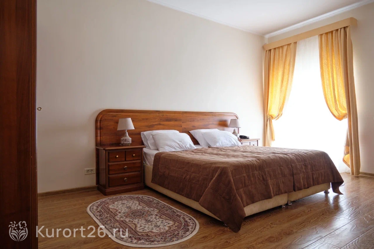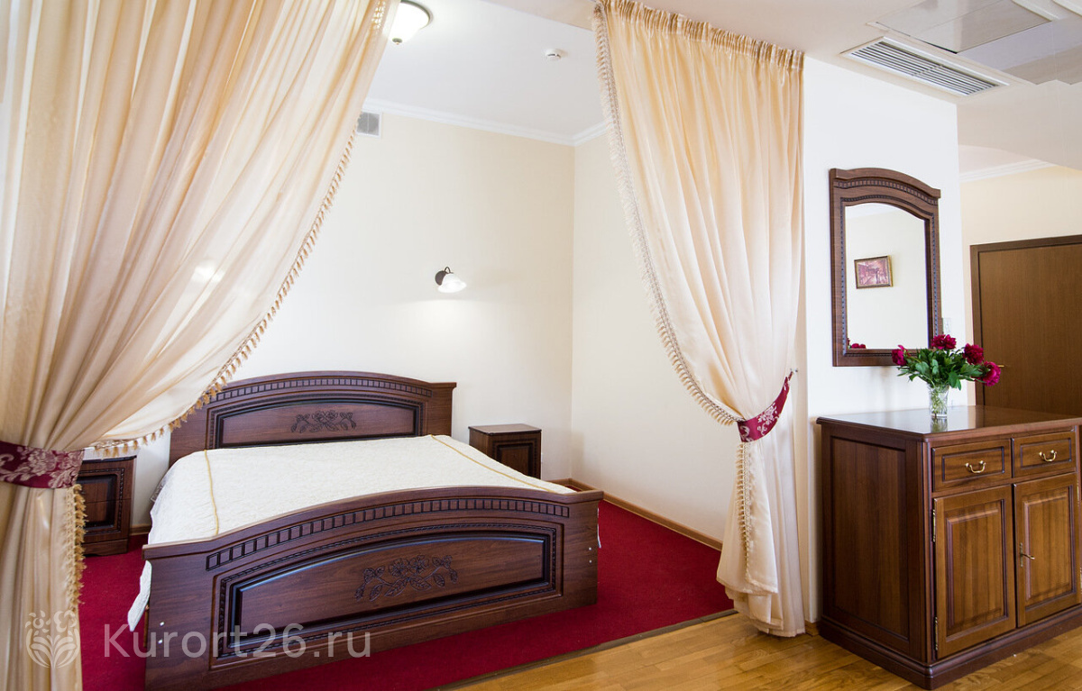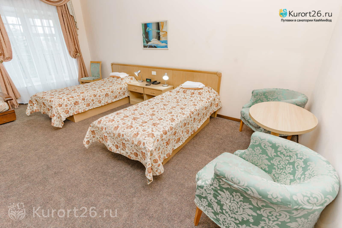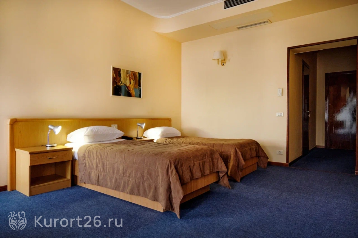 В санатории просторные номера от 25 кв.м. Во всех номерах есть Wi-Fi, телевизор, мини-холодильник, чайник, сейф, фен, халаты, тапочки, косметический набор. В некоторых категориях номеров есть кондиционер. В зданиях превосходная вибро- и шумоизоляция: гости отмечают, что в номерах тихо, ничего не мешает сну и отдыху.