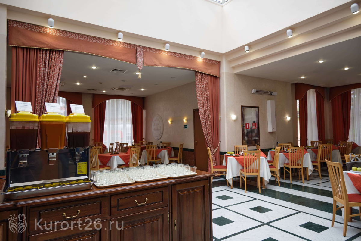 Трёхразовое питание «меню-заказ» включено в цену путёвки. В меню представлены диетические и вегетарианские блюда, есть детское меню.