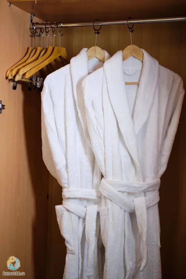 холодильник, телевизор, чайник, фен, набор чайной посуды, сейф, телефон, санузел с душевой кабиной, ванные принадлежности, халат, тапочки, две односпальные кровати