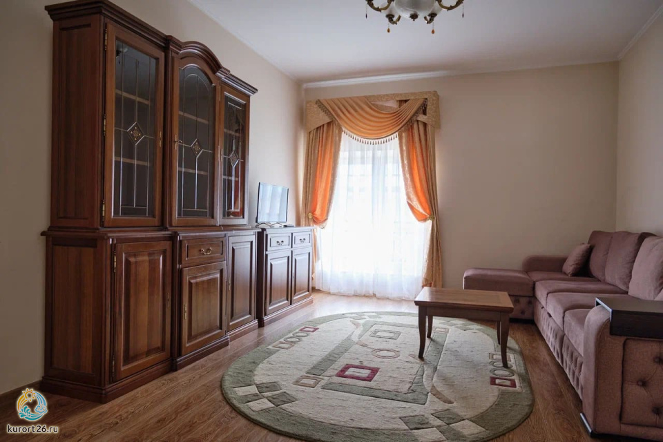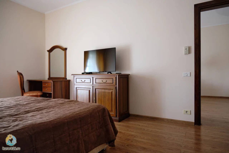 Номер Люкс состоит из двух комнат, которые укомплектованы мини-кухней, двуспальной кроватью (или двумя односпальными кроватями), своей ванной комнатой с джакузи и ванными принадлежностями, телевизором, холодильником, сейфом. В номере есть набор чайной посуды, электрический чайник и телефон.