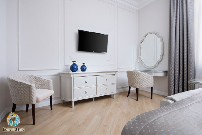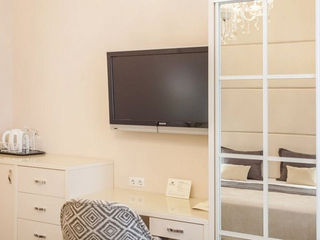 Комфортабельный однокомнатный номер с двуспальной кроватью, либо с двумя полутороспальными. Наличие плазменной панели, кондиционера с индивидуальным управлением и другие необходимые атрибуты, сделают Ваш отдых незабываемым.