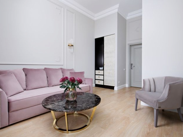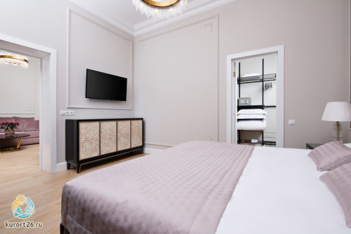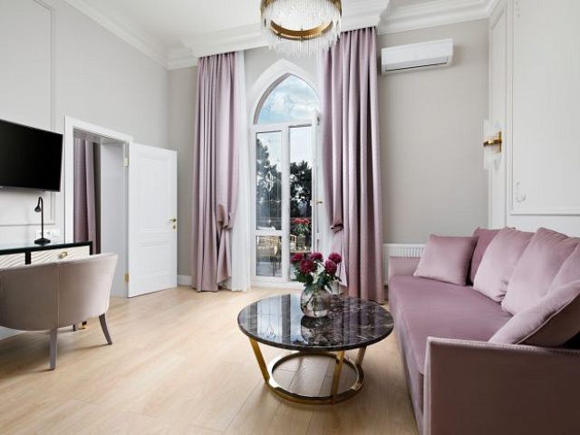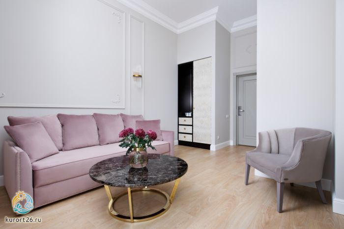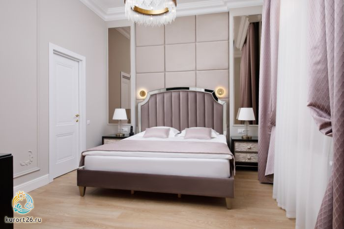 Великолепный и просторный двухкомнатный номер с большой двуспальной кроватью, гостиной, ванной комнатой и гардеробом. Помимо фирменного стиля в номере Вас порадует балкон, что добавит еще большего комфорта для Вашего отдыха.