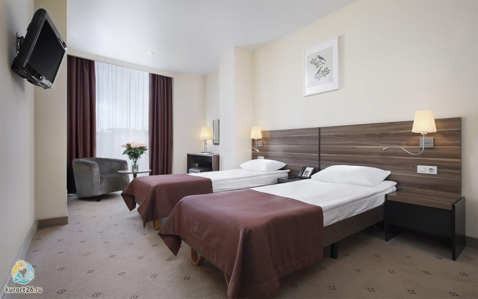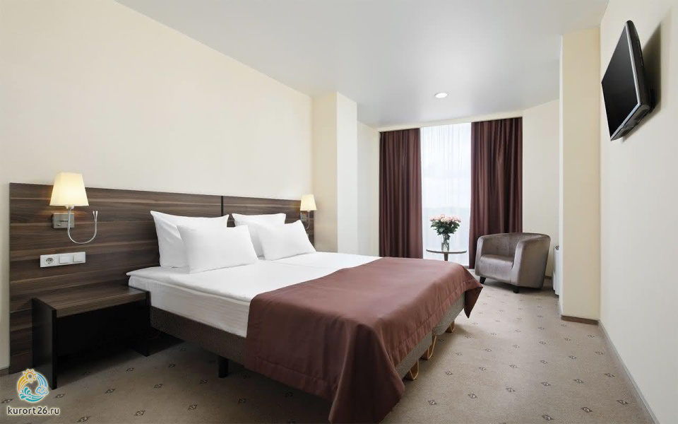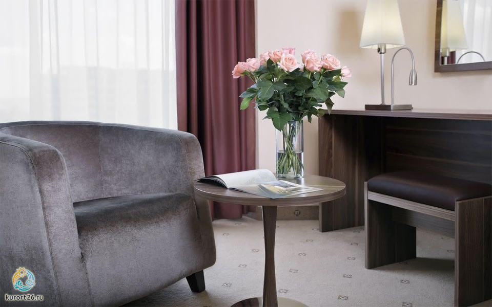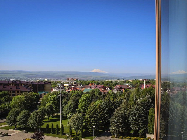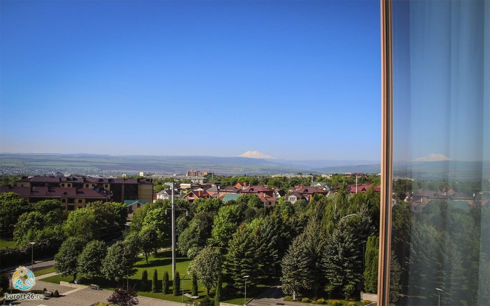 Вид из окон: юг – панорама города Ессентуки, величественные горы Кавказских Минеральных Вод и Северного Кавказа; север – внутренняя территория комплекса и бескрайние степи.