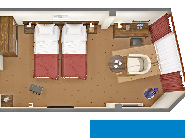 Размещение: две односпальные или двуспальная кровать. Есть возможность установки детской кроватки.