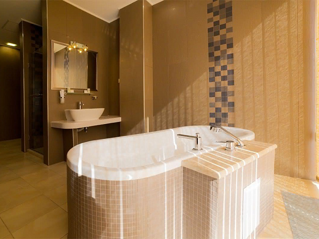 кондиционер, фен, сейф, телефон, интернет в номере, ванные принадлежности, халат, тапочки, электрочайник, весы напольные, три телевизора, посуда, чайный набор, две ванные комнаты с ванной и душевой кабиной, гостевой санузел, биде, мини-холодильник