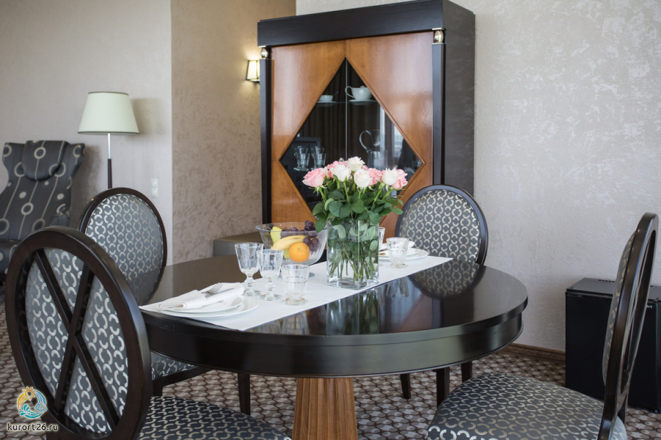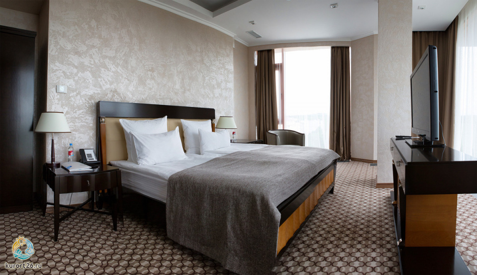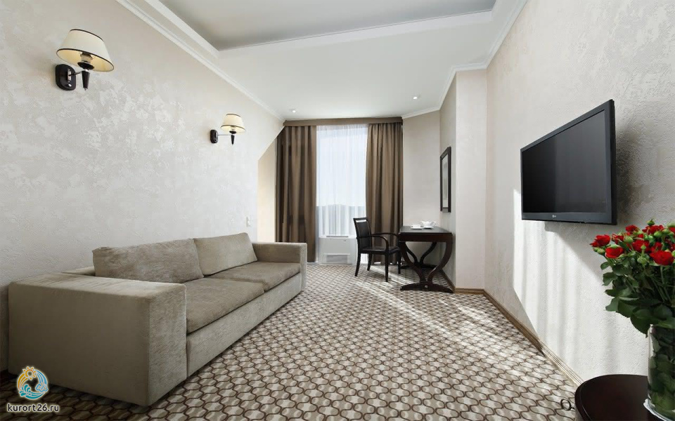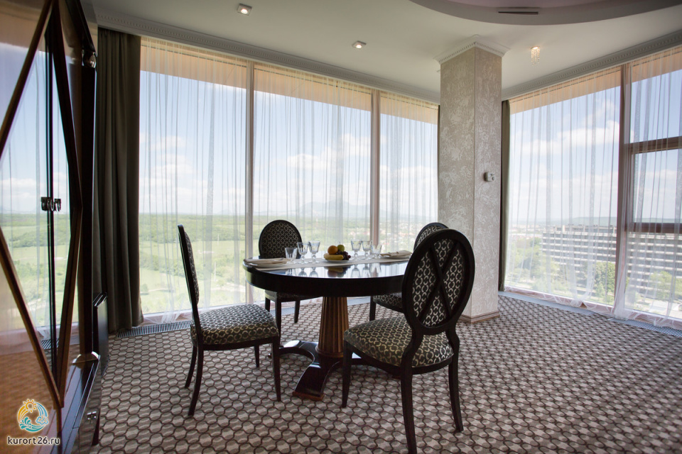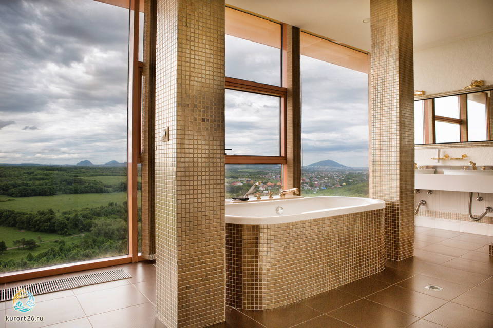 Вид из окон: юг – цепь сверкающих горных вершин, среди которых возвышается легендарный царственный Эльбрус. Север – неописуемо красивые горы-лакколиты и бескрайние степные просторы Кавказских Минеральных Вод.