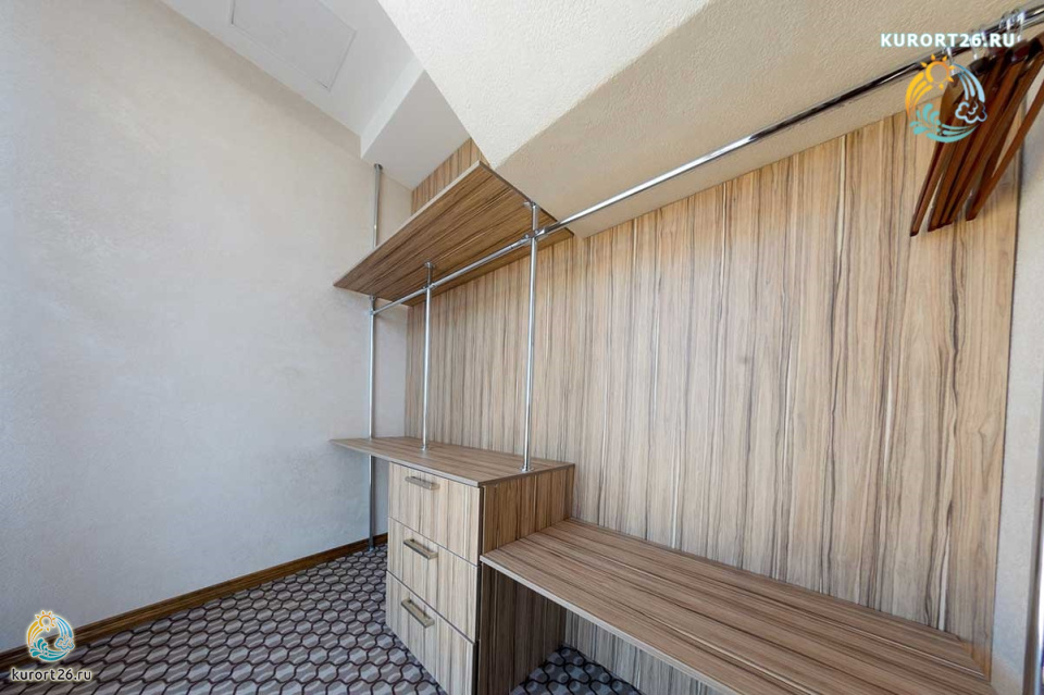 Размещение: большая двуспальная кровать в спальне, раскладывающийся диван в кабинете. Есть возможность установки детской кроватки.