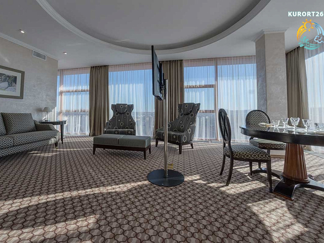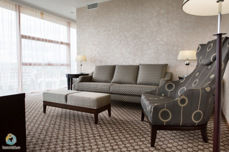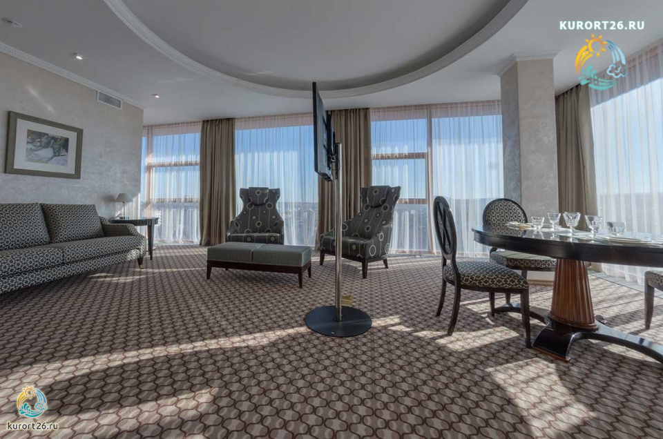 Особенности номера: Апартаменты состоят из гостиной, спальни, кабинета и кухни.
