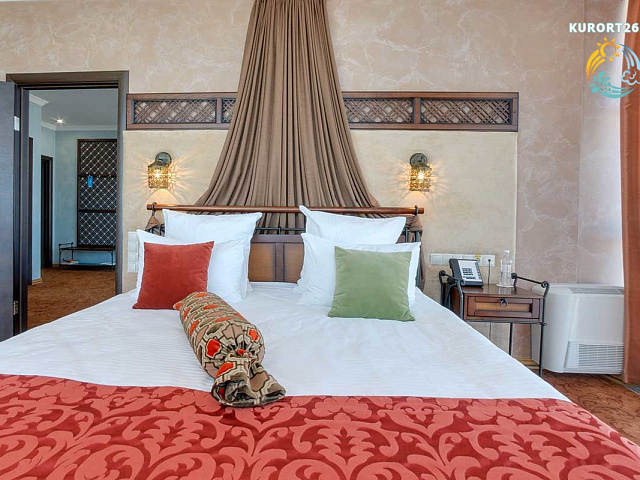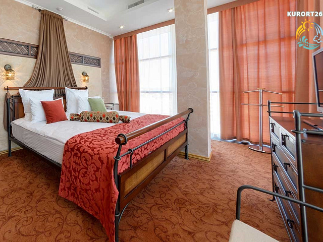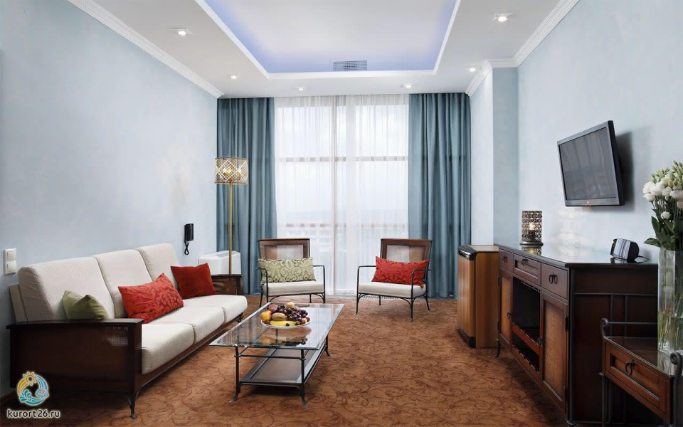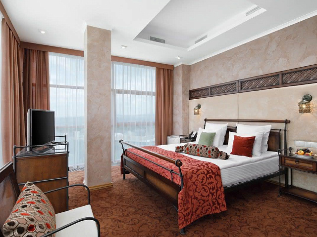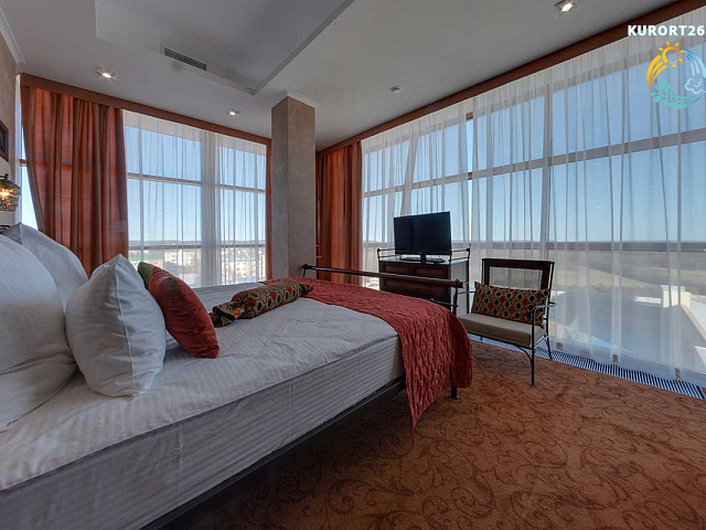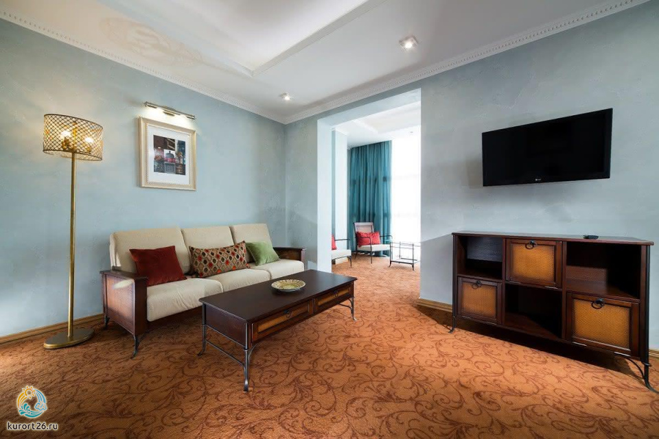 кондиционер, фен, сейф, телефон, интернет в номере, ванные принадлежности, халат, тапочки, электрочайник, два телевизора, посуда, Рабочая зона с письменным столом и удобным стулом, Душевая кабина, чайный набор, биде, мини-холодильник