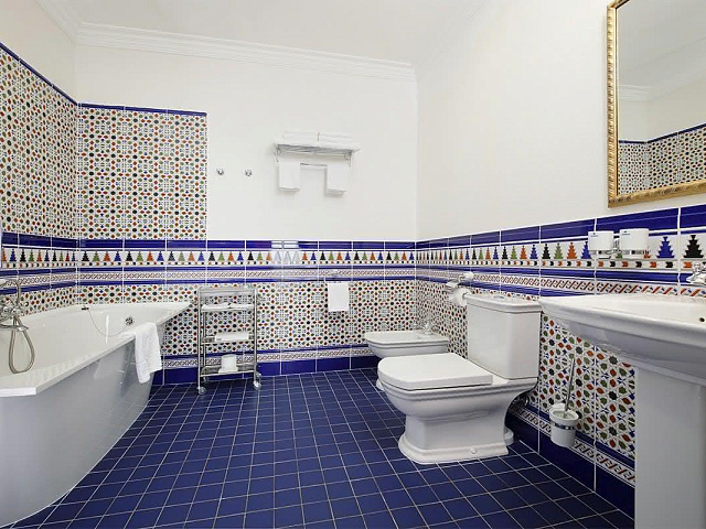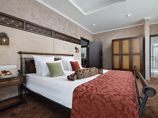 кондиционер, фен, сейф, телефон, интернет в номере, ванные принадлежности, халат, тапочки, электрочайник, весы напольные, три телевизора, посуда, чайный набор, две ванные комнаты с ванной и душевой кабиной, гостевой санузел, биде, мини-холодильник