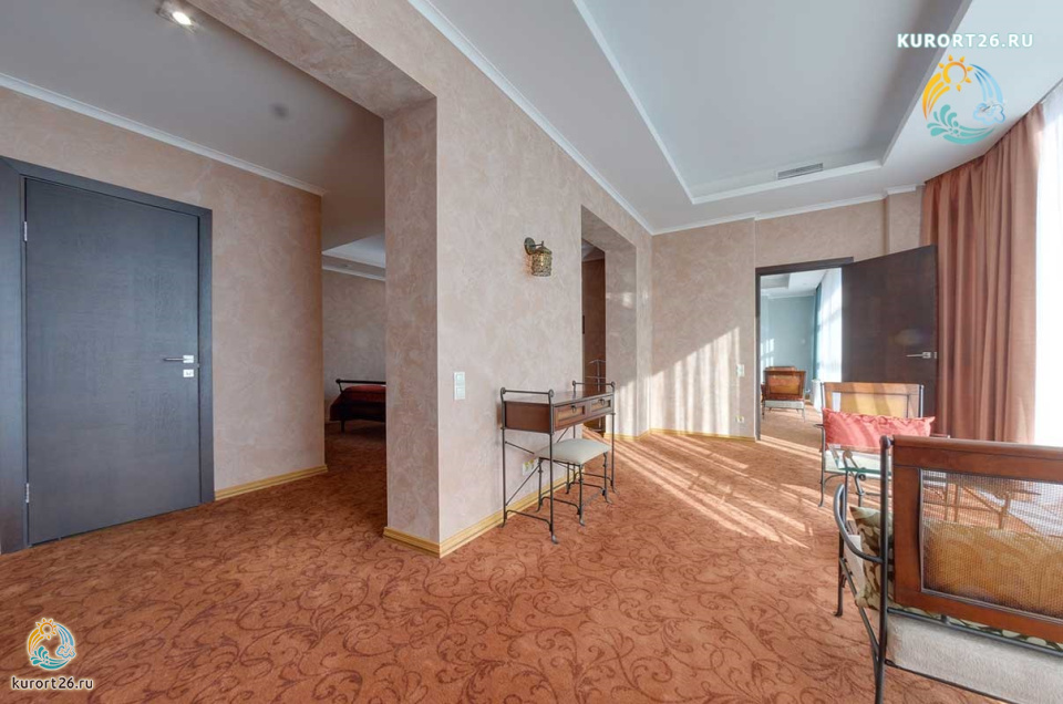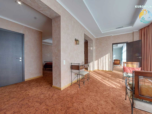 кондиционер, фен, сейф, телефон, интернет в номере, санузел с душевой кабиной, ванные принадлежности, халат, тапочки, электрочайник, ванна, три телевизора, посуда, Рабочая зона с письменным столом и удобным стулом, чайный набор, гостевой санузел, биде, мини-холодильник