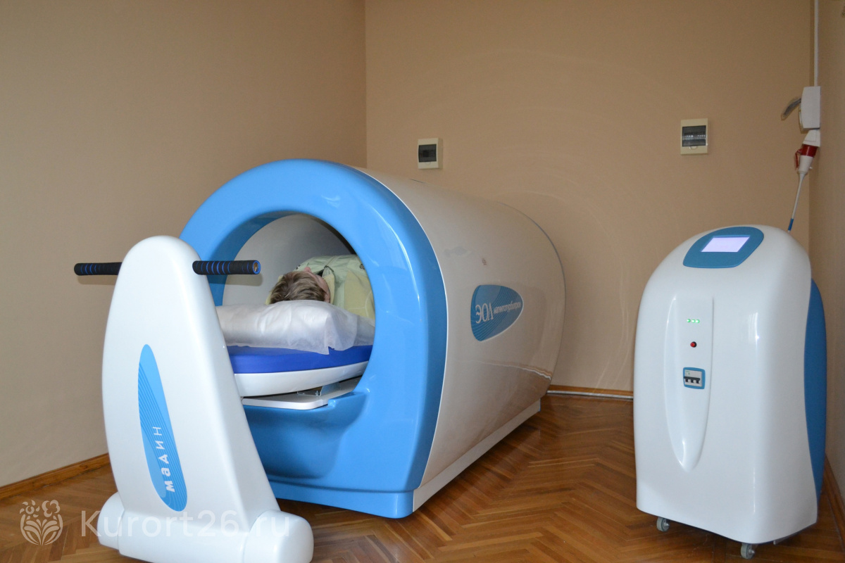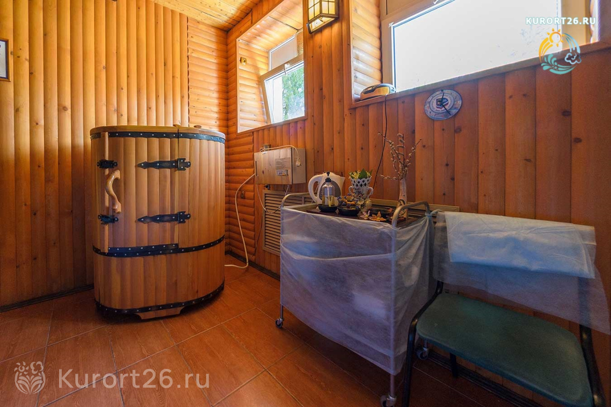 - 18 видов физиотерапии и 20 видов лечебных ванн и душей. Грязелечение, карбокси- и озонотерапия, ВЛОК, барокамера, прессотерапия, соляная комната, кедровая бочка, лечение пиявками, ингаляции, лекарственные капельницы, групповая и индивидуальная психотерапия