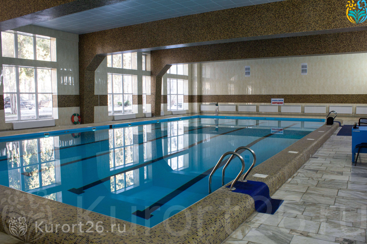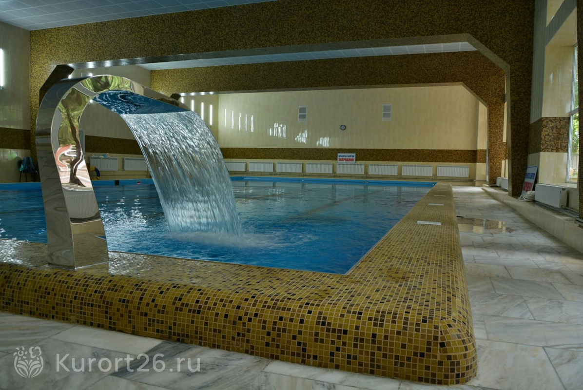 Крытый бассейн 20×12 м с водопадом, гейзером и искусственным течением. Проводятся занятия аквааэробикой.