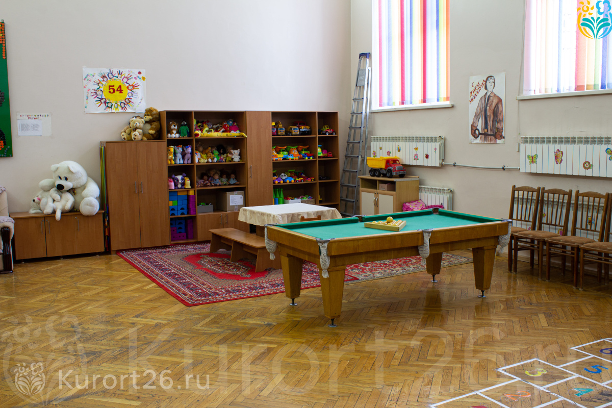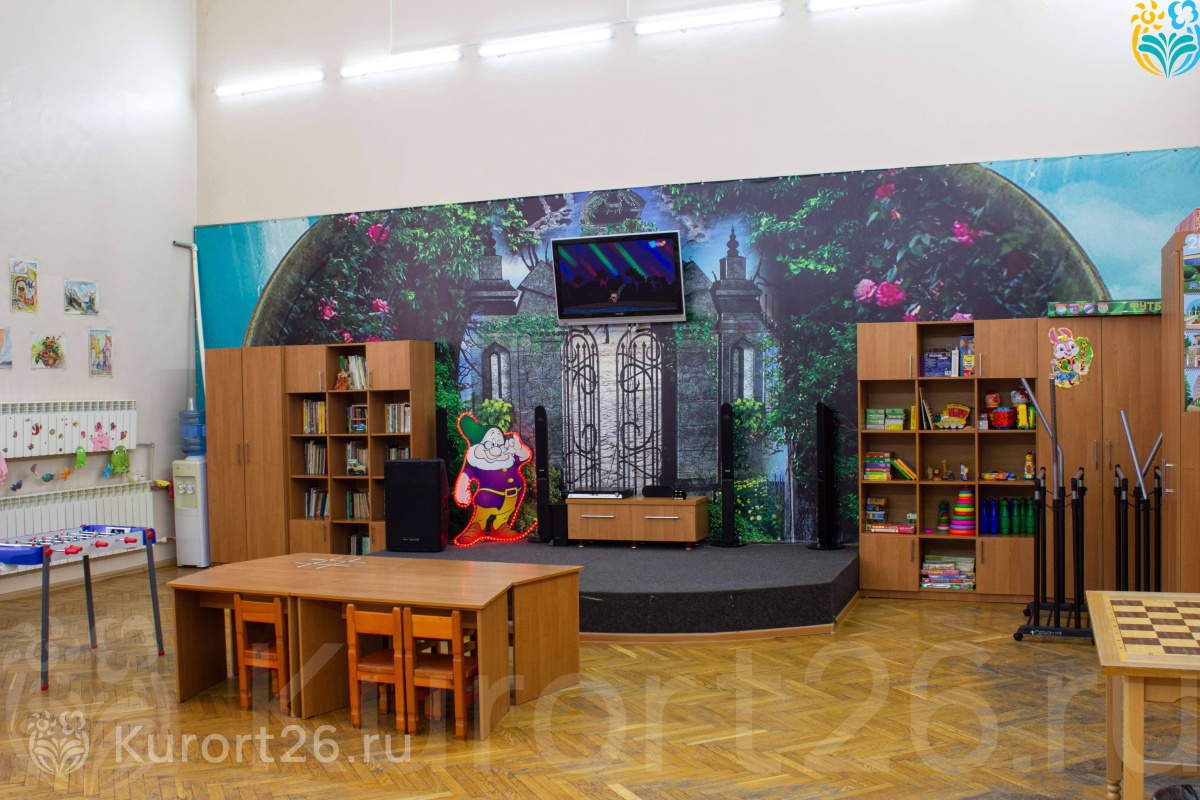 - Отдых с детьми с 0 лет, лечение — 5 лет. Ведет прием врач-педиатр. Есть детская комната с воспитателем и открытая детская площадка. Ежедневно в детской комнате в 16:00 проводится дискотека. Также для детей организуются игры и мероприятия на свежем воздухе