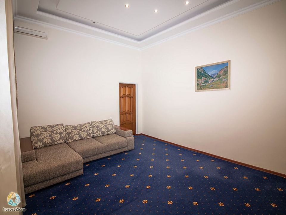 телевизор, фен, сейф, телефон, интернет в номере, санузел с душевой кабиной, ванные принадлежности, двуспальная кровать, шкаф, прикроватные тумбочки, диван, электрочайник, стол, зеркало, стул, посуда, мини-холодильник