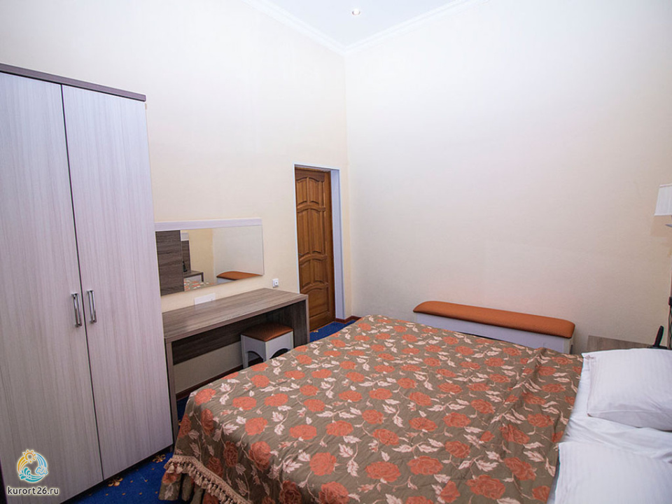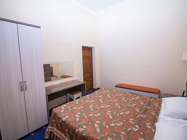 кондиционер, телевизор, фен, сейф, душ, телефон, интернет в номере, ванные принадлежности, двуспальная кровать, шкаф, электрочайник, стол, зеркало, прикроватная тумба, стул, посуда, мини-холодильник