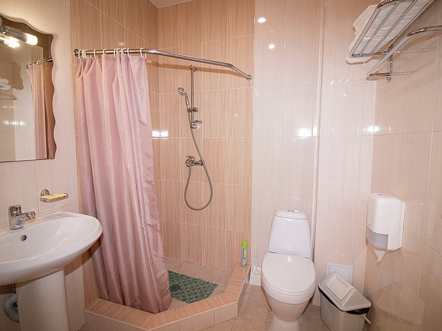 кондиционер, телевизор, фен, сейф, телефон, интернет в номере, санузел с душевой кабиной, ванные принадлежности, шкаф, прикроватные тумбочки, односпальная кровать, электрочайник, стол, зеркало, стул, посуда, мини-холодильник