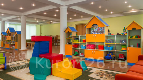 Детская комната с воспитателем и детская площадка на территории (июнь-август)