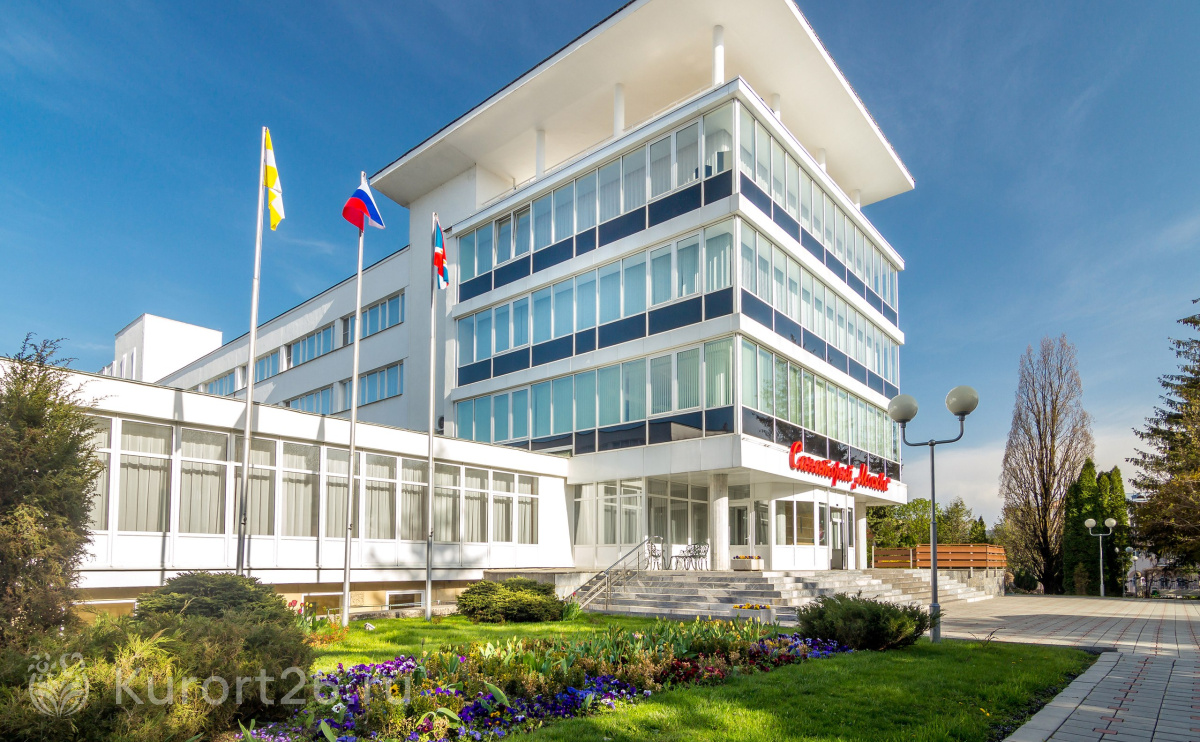 Санаторий находится рядом со входом в Лечебный парк.